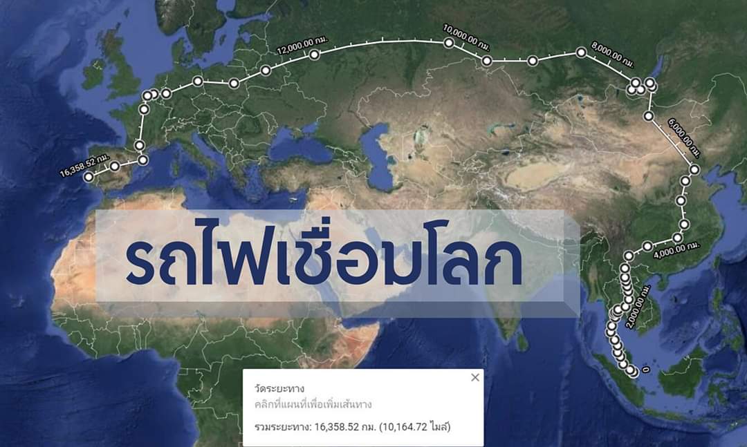 태국-중국 철도 (방콕 비앙 찬 쿤 밍 밍)가 완성되었을 때 약 4-5 년이 소요될 것으로 예상되며 새로운 차원의 여행이 이루어질 것입니다. 세계에서 가장 긴 철도 노선의 양쪽 이 열차는 싱가포르의 우드 랜즈 기차역에서 시작됩니다. 노스 바운드 쿠알라 룸푸르 중앙역 안다만 해안을 따라 파당 베사의 태국 국경, 송클라, 태국 운하 (미래 프로젝트) 나콘시 탐 마랏을 통해 태평양과 인도양을 항해 할 수있는 대형 크루즈 터미널을 건설 한 프로젝트 태국만을 따라. 비아 수랏 타니 Hua Hin, Ratchaburi, Nakhon Pathom과 같은 관광 도시를 통해 Koh Samui, Koh Phangan, Koh Tao로 보트를 타고 Bang Sue Central Station의 ASEAN 철도 운송 허브로 갈 수 있습니다. 방콕 여기에서 비엔티안까지 4 시간 밖에 걸리지 않는 고속 열차에 연결 세계 유산 도시를 통해 아유타야 카오야 이와 같은 자연 유산 팍총 역에서 농 카이에서 메콩 강을 건너 타 나랑 (Tha Na Raeng), 위 앙찬 (Wang Chan), 루앙프라방 세계 유산 도시 방비 엥 (Vang Vieng)을지나 8 시간 만 지나면 쿤밍 (Kunming)에 도착한 후 베이징 고속 열차와 연결됩니다. 2,760km 길이의 중국에서 가장 긴 철도 인 쿤밍은 허베이 성 석가장시, 허베이 성 정저우시와 같은 많은 중요한 도시를 통과 할 것입니다. 후난 성 창사시 후베이 성 우한시 귀주성의 구이 양시 그리고 쿤밍은 베이징에서 달리 티베트어 지붕 철도의 방향을 바꿀 수 있고, 기차를 타고 트랜스 몽골 베이징-울란바토르 노선 기차는 북서쪽으로 갈 것입니다. 그리고 산악 지역으로 오리 경로를 따라 긴 산입니다 이 기간 동안 산을 관통 할 수있는 50-60 개의 터널이 있으며, 터널에서 기차가 나올 때마다 경로를 따라 웅장한 협곡과 강이 보입니다. 중국의 만리 장성도 놓치지 마십시오. 거기에서 그는 초원에 들어갈 것이다 울란바토르에서 정기적으로 Ger 지구 또는 지역 주민이 있습니다. 러시아를 입력 기차는 세계에서 가장 오래되고 깊은 호수 인 바이칼 호수를 따라 운행되며 시베리아의 빙원을 통과합니다. 안타이 산맥을 통해 모스크바에 도착하는 데 약 7 일이 걸렸습니다. 우크라이나의 수도, 키예프에서 바르샤바, 폴란드 및 독일로의 수도 베를린 중앙역 또는 베를린 중앙역은 유럽에서 가장 큰 기차역이며, Ese III 열차와 Blaschell 중앙역을 연결합니다. 브뤼셀 중앙 벨기에 거기에서 파리 방향으로 파리 가르 뒤 노르 (Garre due Du Nord)으로 이동 한 후 지하철을 타고 Gare d' Austerlitz 역까지 오세요. 스페인의 바르셀로나 산츠, 아름다운 작은 마을, 포도원, 라벤더 밭을 통해 불과 6 시간 25 분 프랑스 남부 Mut 생존 터널 피레네 산맥을 타고 바르셀로나로 이동 한 다음 마드리드의 에스타 시온 데 마드리드 아토 차 역 (Estación de Madrid Atocha Station)으로 이동 한 다음 포르투갈의 리스본 (Lisbon)의리스 보아 산타 아폴로니아 (Lisboa Santa Apolónia) 역으로 이동합니다.