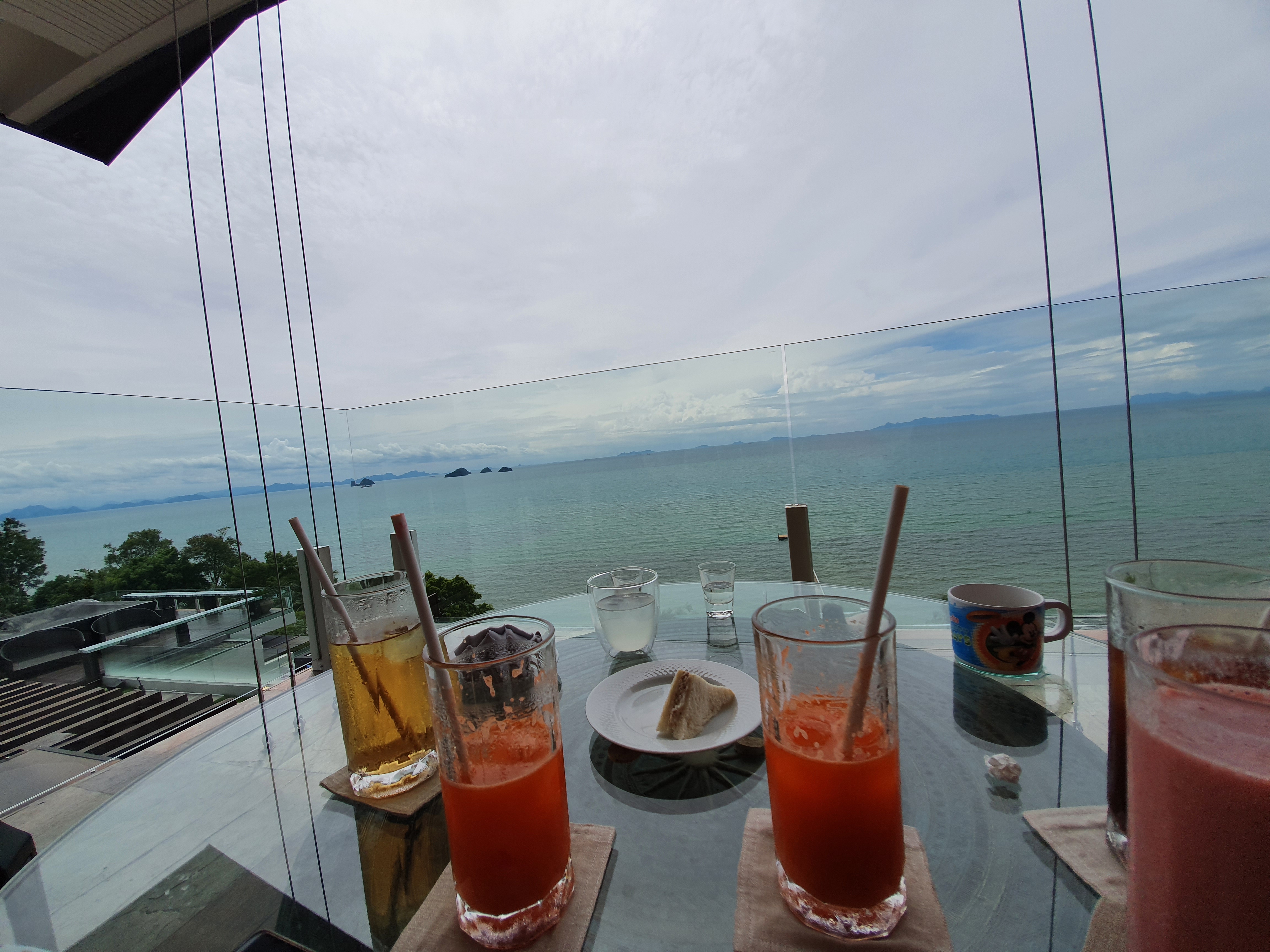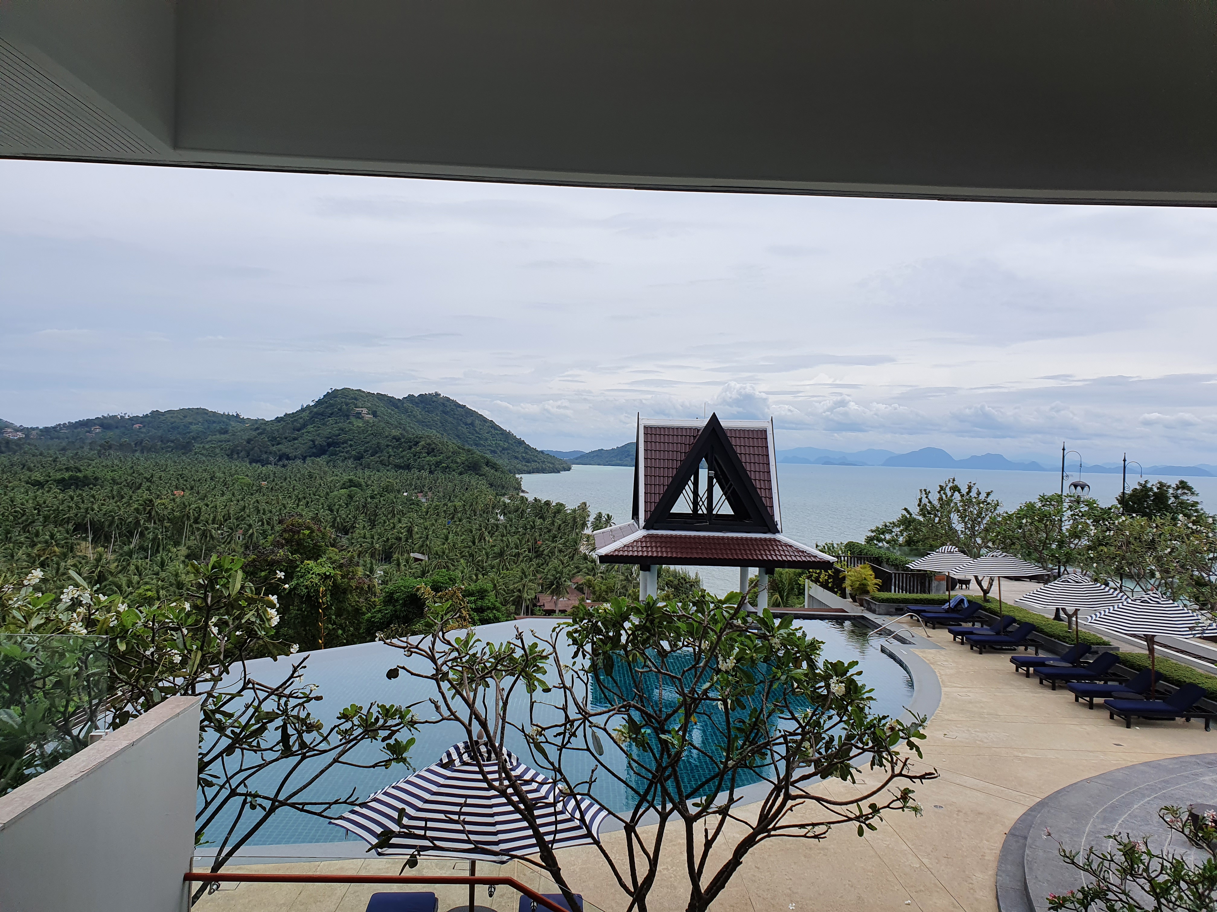 코사무이 여행 첫날은 인터콘티넨탈로 결정했다. 가파른 언덕에 위치 하고 있어 전망이 우선 너무 좋았다. 언덕에 위치하고 있어 전용 비치가 없을 것을 고민할 수 있는데 아주 넓은 부지의 호텔은 버기카를 타고 전용비치가 있으므로 걱정할 필요가 없다. 체크인을 위해서는 체온 체크를 하고 입장 가능하고 전체적으로 직원들의 서비스 마인드가 상당히 마음에 든다. 아이와 함께 여행을 떠나면 항상 호텔내에서 거의 모든것을 해결하는 타입이라 체크인시 IHG맴버 가입안내를 받고 라운지 이용가능하다는 점이 마음에 들어 추가 결제를 하고 바로 라운지로 이동해 체크인을 진행했다. 라운지는 로비 바로 옆에 있어 직원들이 항상 상주하고 있고 서비스를 받기 최적이였다. 웰컴 드링크 외 음료 및 간단한 다과를 주문하고 천천히 체크인을 진행하고 객실로 이동.