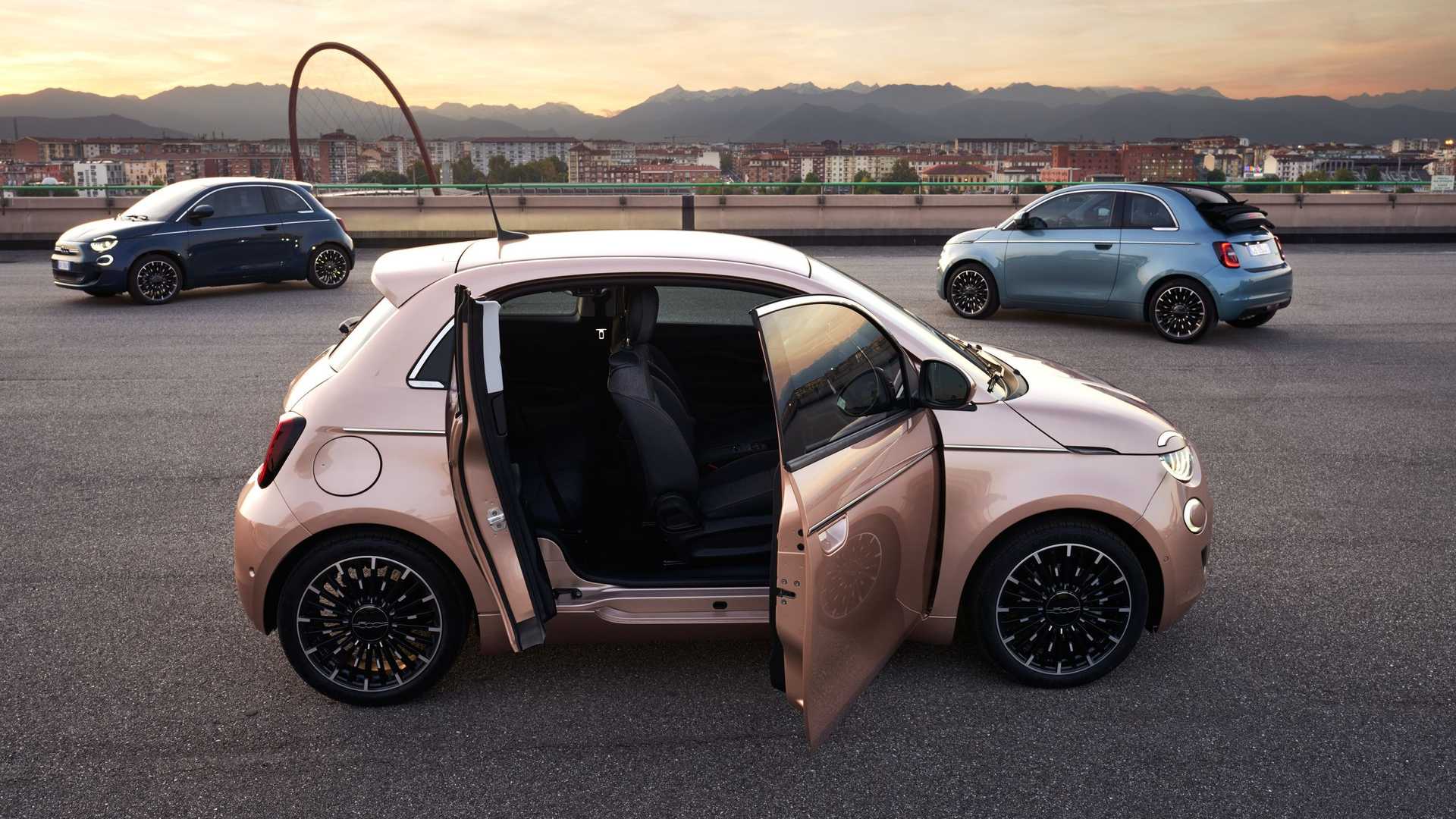피아트 500 (Fiat 500 Electric)은 3,630 x 1,690 x 1,490mm 이며, 파워트레인은 시스템 출력 118마력의 전기모터와 42kWh 용량의 배터리의 조합과 93마력의 전기모터와 24kWh 용량의 배터리 조합 총 두조합이 출시되었다.
