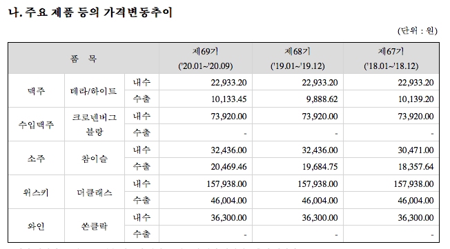 (주) 하이트진로 분기보고서 중