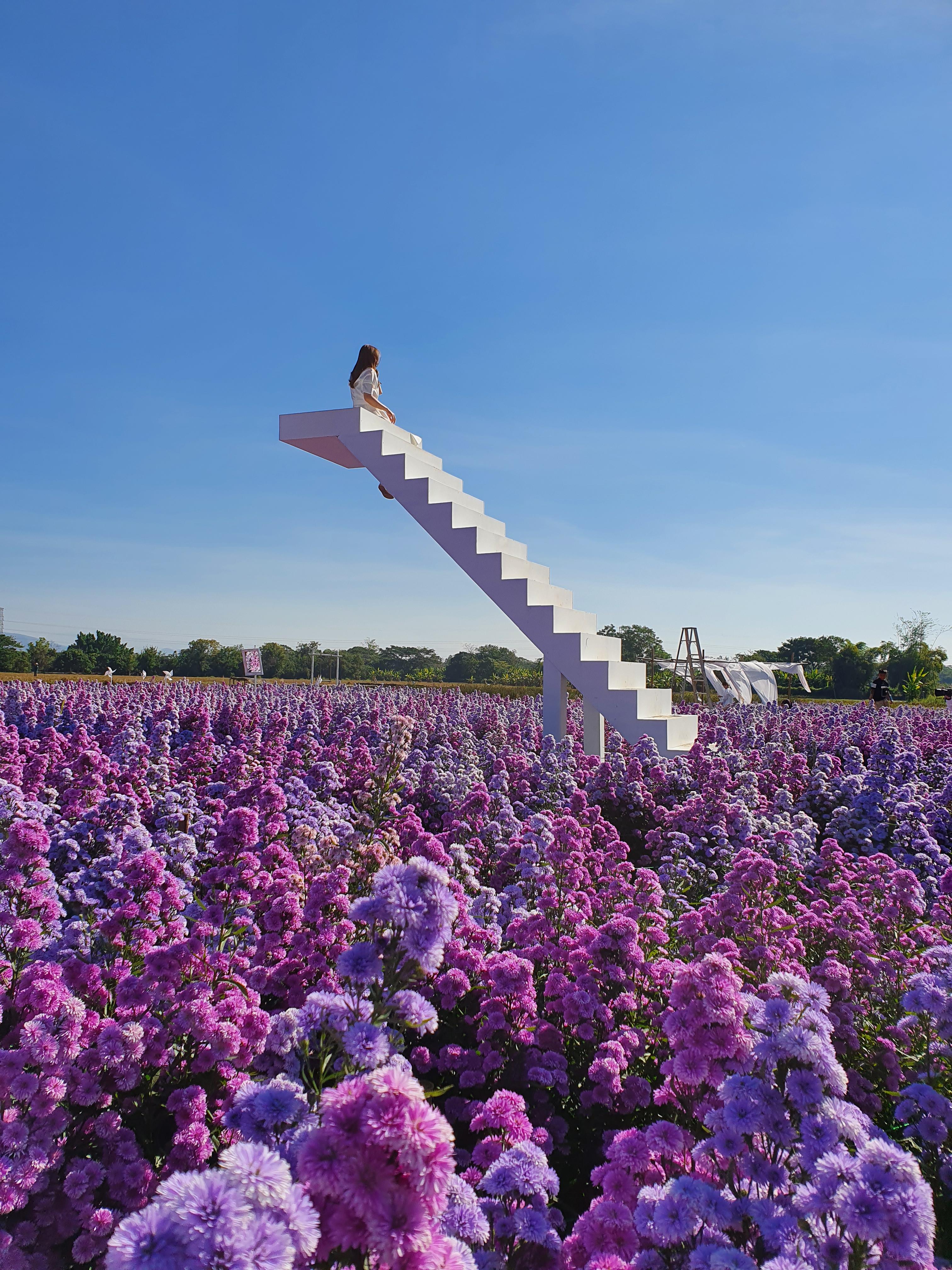 꽃밭은 지나가면서 본 곳만 족히 10곳이 넘었다. 흰색, 빨간색, 보라색 등 다양한 색을 뽐내는 꽃을 심어 컨셉을 정해서 사진을 찍게 하고 입장료를 받는 식인데 우리가 정했던곳도 꽃 교체 시기가 도달해 방문했을 때 꽃이 거의 없다고 해서 취소하고 사원 근처 꽃밭으로 갔다. 그래서 팁을 알려주자면 인스타그램으로 chiangmai 를 검색한다. 그러면 인기 게시물을 살펴보면서 마음에 드는 장소를 위치를 찍어 들어가보면 최신게시물로 현재 상태를 확인할 수 있다. 그렇게 장소가 검색되었다면 공식 페이스북을 찾아 영업시간과 현재 상태를 한번 더 확인하고 움직이면 된다.