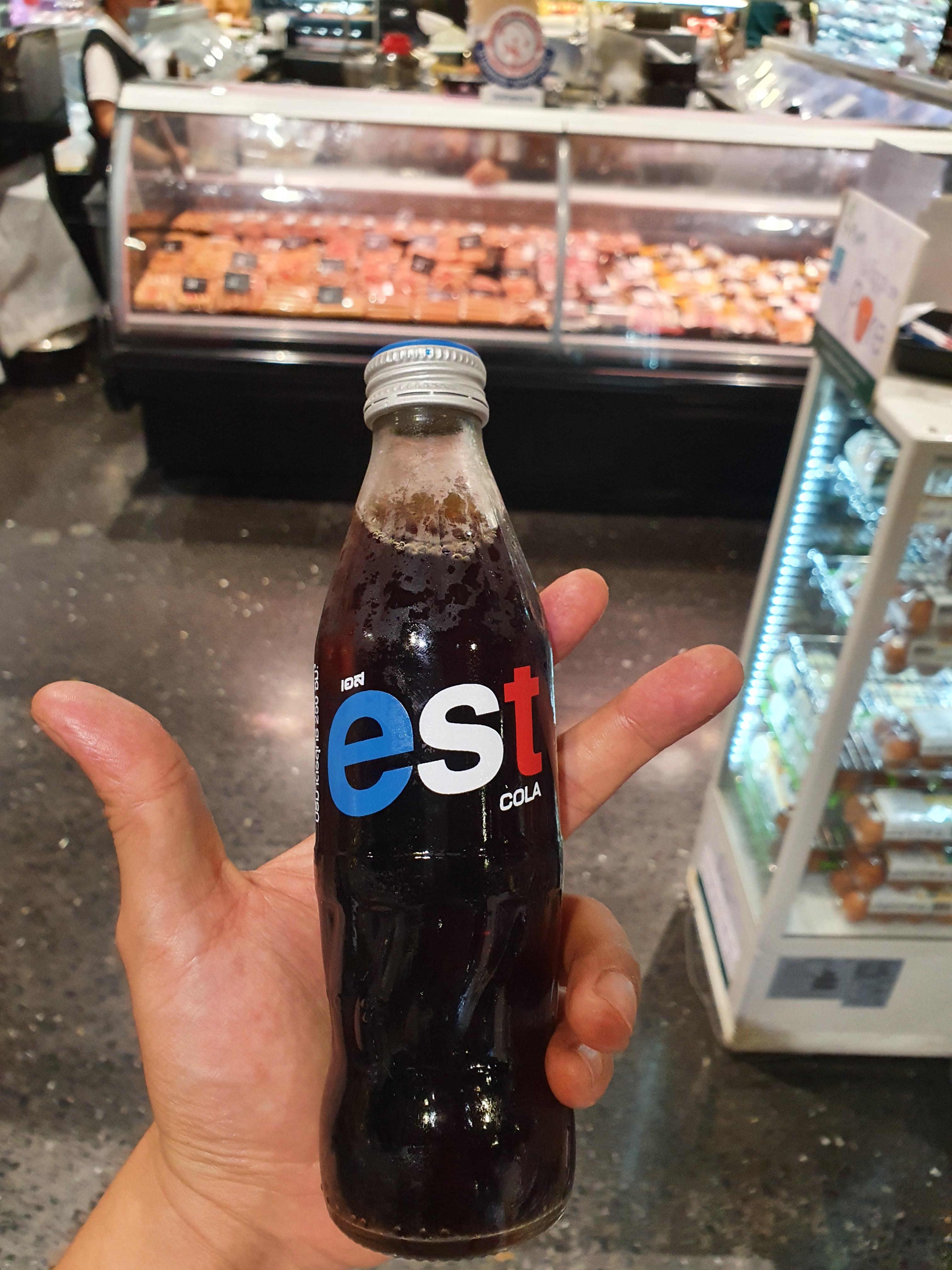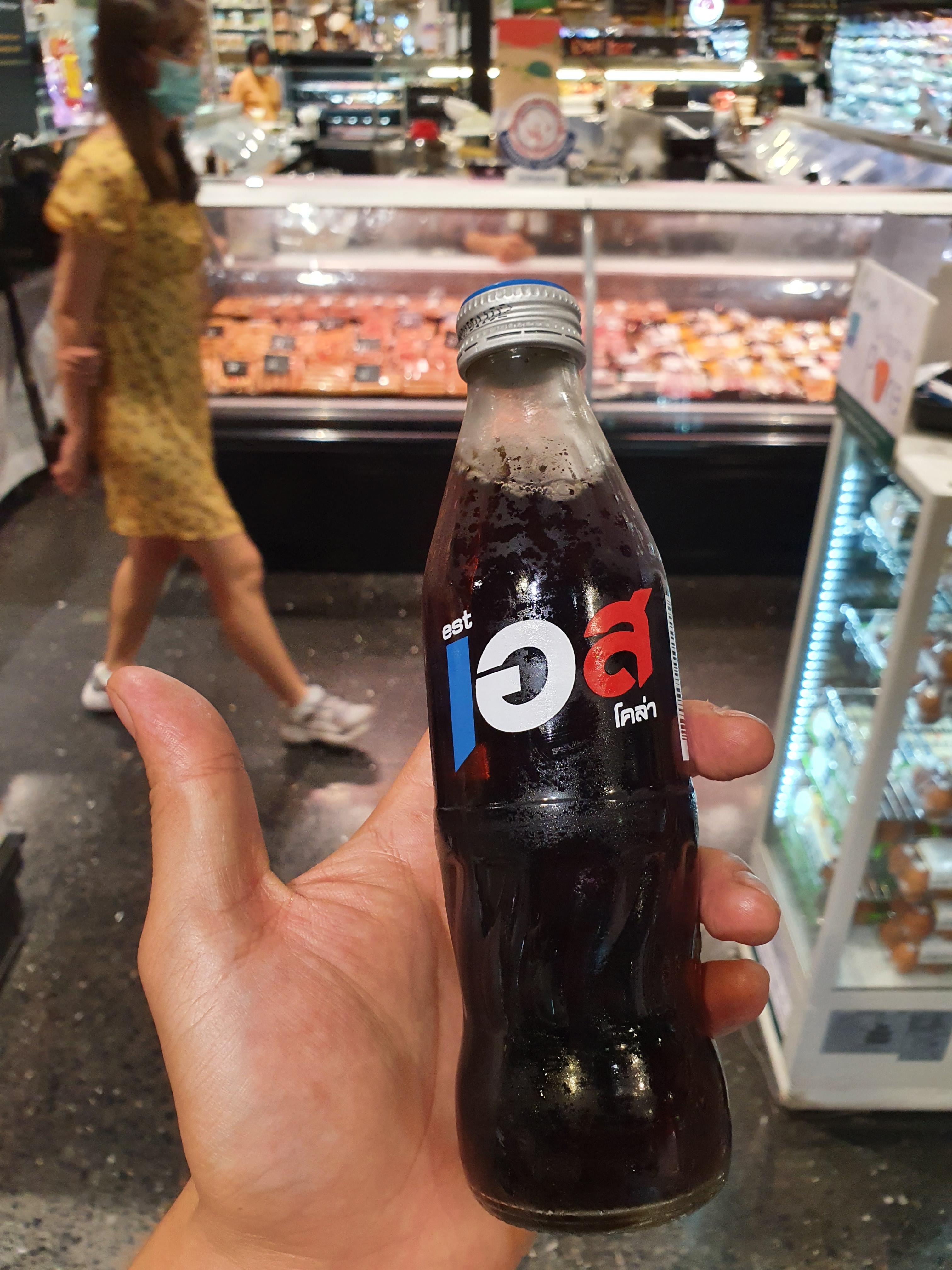 손바닥 사이즈에 병으로 만든 콜라. 다 먹고 인테리어 용품으로도 딱. 한쪽에는 영어, 한쪽은 태국어