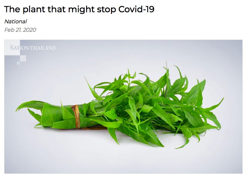태국에서 코로나 19 로 인해서 불안감이 커져 가면서 마스크 , 손 세정재 대책 등 다양한 것들이 쏟아 지고 있는데, 태국에서 아주 쉽게 구할 수 있는 "천심련"을 권고 했다. 천심련은 태국에서 '