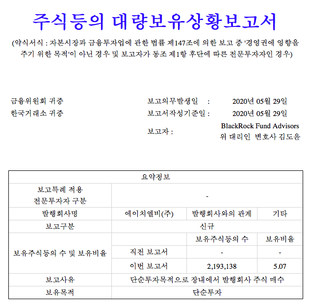 삼성전자 지분을 보면 Blacklock 이라는 글귀를 보았을 것이다. 우리나라 시총 1위 그룹에 저렇게 지분공시를 할 만큼 큰회사가 어딘가? 세계 최대 자산운용사이다. 오늘 이곳저곳 블랙록 이야기가 돌아 지분공시를 확인해보았다.