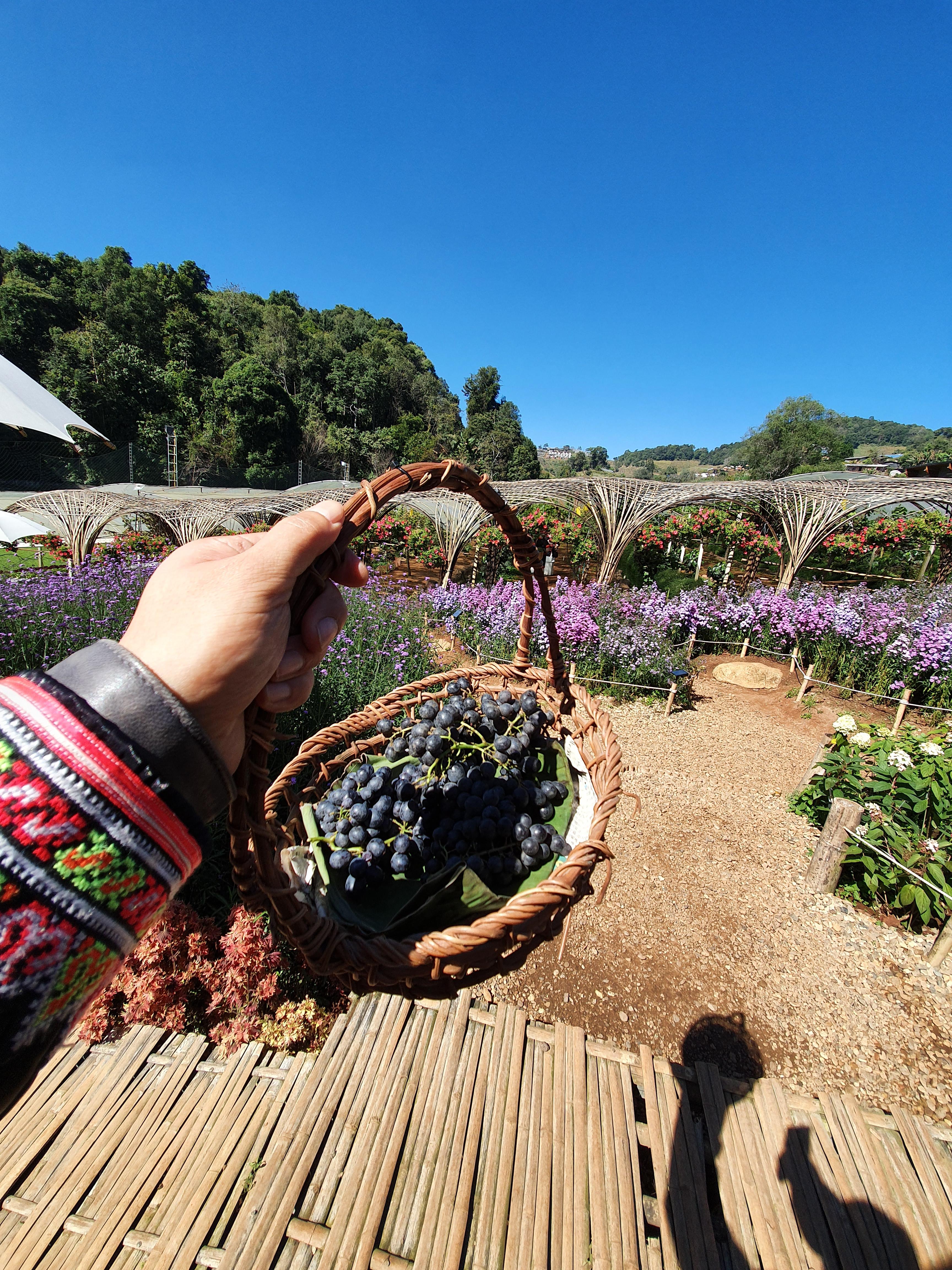 먼쨈 혹은 몬쨈 으로 알려진 치앙마이의 작은 마을로 예전 빠이 유행이 불던 기억이 솔솔 난다. 추운 날씨를 경험하기 위해서 태국 겨울이 되면 치앙마이는 피크시즌이 되는데 특히 더 춥고 산속 마을 체험을 하고 싶은 이들에게 딱 맞아 떨어진 곳이 먼쨈이다. 치앙마이에서 30~40분 정도 차를 타고 가면 올라갈 수 있는데 길이 험할 수도 있다는 얘기를 많이 들었지만 막상 그렇게 험하지는 않았다. 강원도를 다녀온 사람들이라면 친숙한 길이다. 어쨋든, 오늘은 포도 이야기를 전하려고 한다.