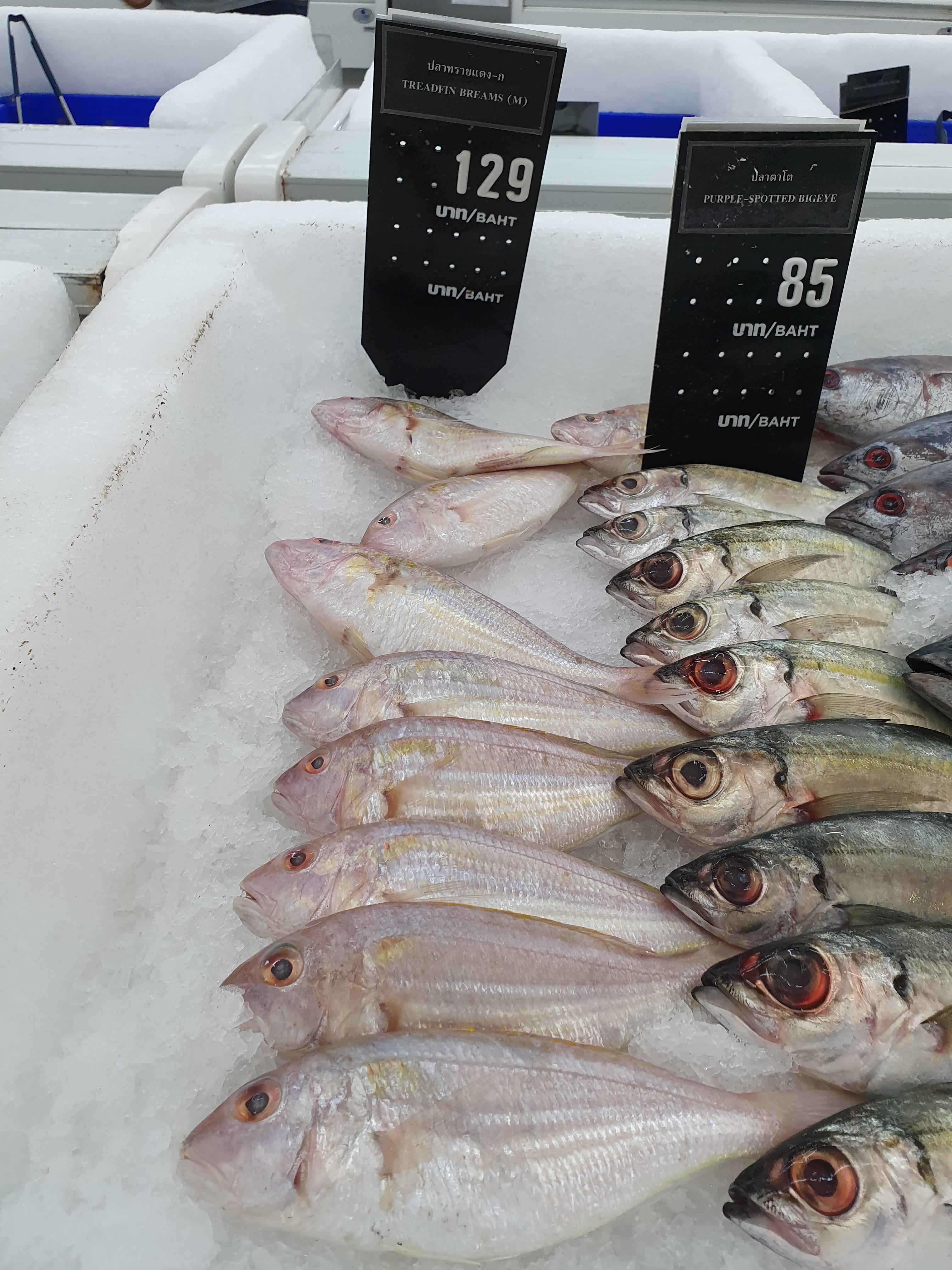 태국 모든 마트에서 볼 수 있는데 최애하는 마크로에서 찍은 사진이다. 손바닥 사이즈의 생선인데 1kg 에 129 바트니 한국돈으로 5천원도 안된다. 심봤다 ~ 혹시 태국에서 생활하시면서 생선구이는 고등어로 떠올리며 태국의 맛없는 고등어 요리를 해보고 실망했던 분들이라면 실꼬리돔은 추천한다. 일반 조기처럼 살이 잘 부셔지니 인터넷으로 검색해서 잘 구으면 비린내도 없고 아주 맛난 생선 구이를 맛볼 수 있을 것이다. 개인적으로 비린내에 민감해 생선을 잘 안먹는 편인데 실꼬리돔는 즐겨 먹는편이라 소개하고자 포스팅을 마련했다.