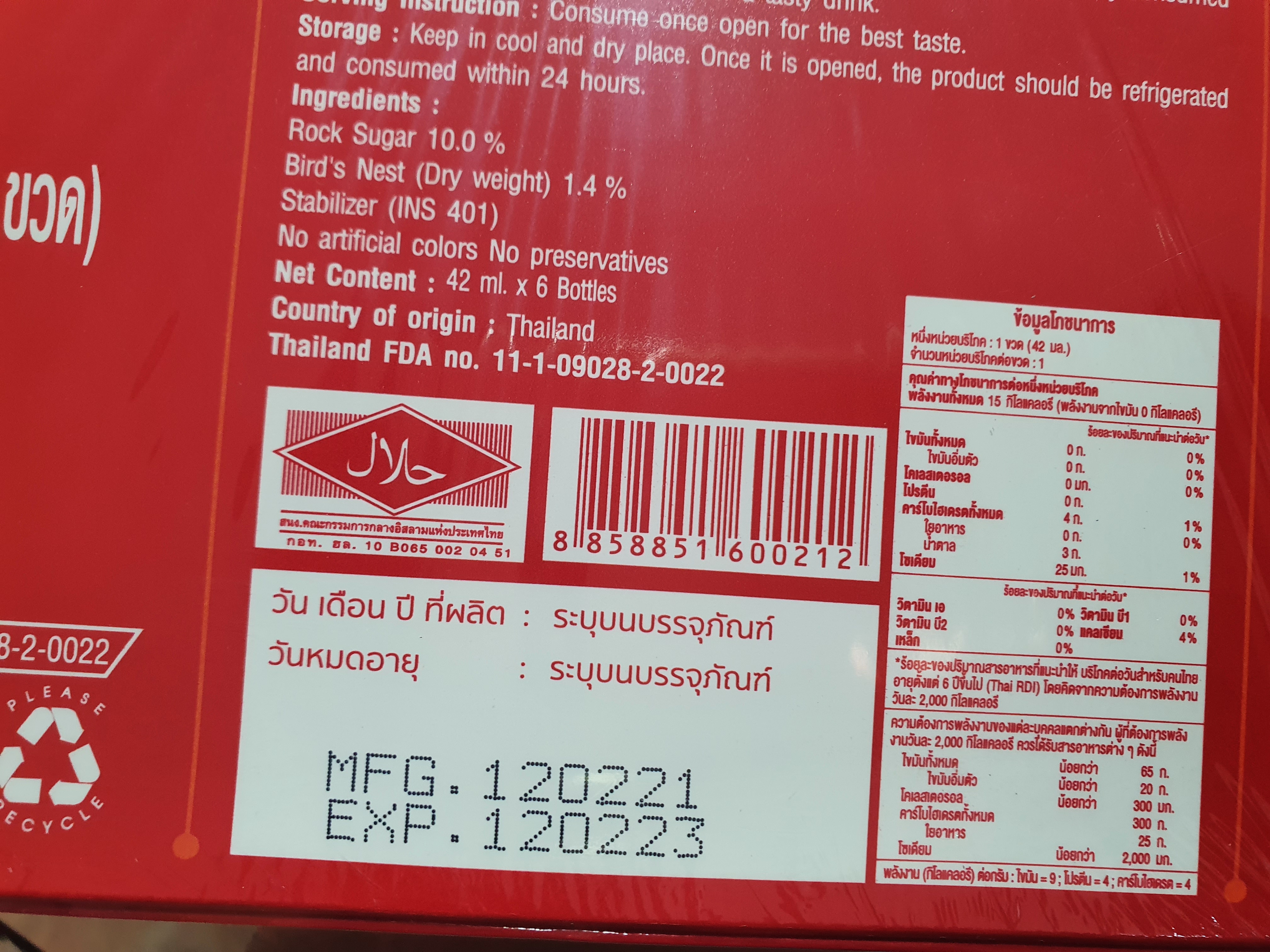 관광객이 줄어들면서 내수 판매가 늘고 있다. 외국인들이 투어로 들어오면 일명 선물샵 가서 하나씩 사던 제품들이 이제 그런 수요가 없어지니 태국 내수로 돌리는 분위기다. 제비집을 42ml 병이 한팩에 6개가 들어가 있다. 총 5팩을 사는데 5마넌 아래로 샀다. 에헤라 디야~