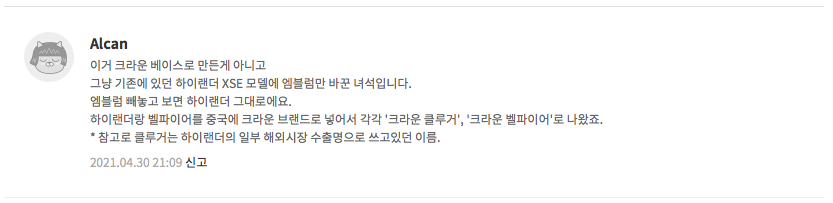 잘못된 내용 수정 합니다. 크라운 베이스가 아니라 원래 있던 모델이라고 하네요