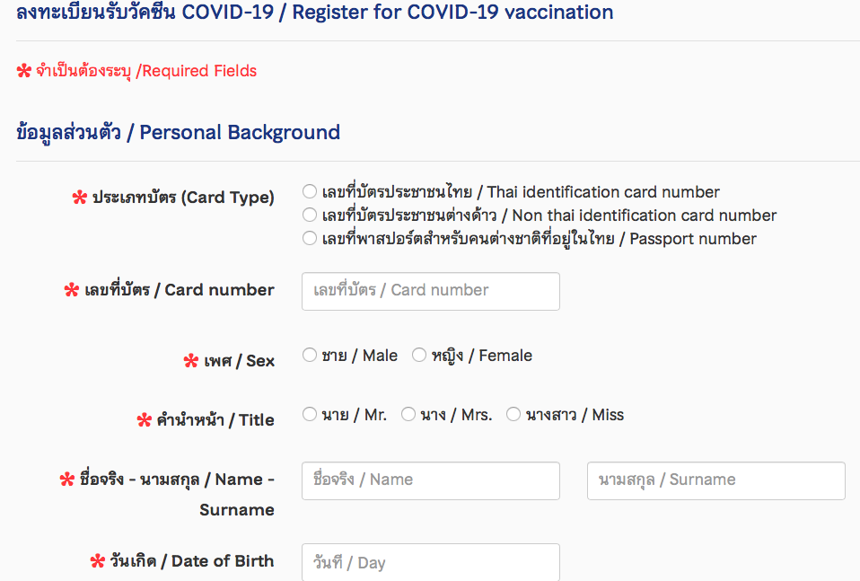 태국 정부는 태국에 머물고 있는 외국인도 백신을 접종 할 수 있도록 하겠다는 발표 이후에 자세한 내용은 따로 공지하겠다고 했는데 이번에 등록할 수 있는 절차가 나왔다. 아래 링크의 사이트에서 등록할 수 있고 사용될 백신은 시노백이라고 알려져 있다. 간단한 내용만 작성하면 가능하고 등록 후 백신이 준비되는데로 문자(SMS)가 오고 병원과 예약을 잡고 접종을 맞을 수 있다고 한다.