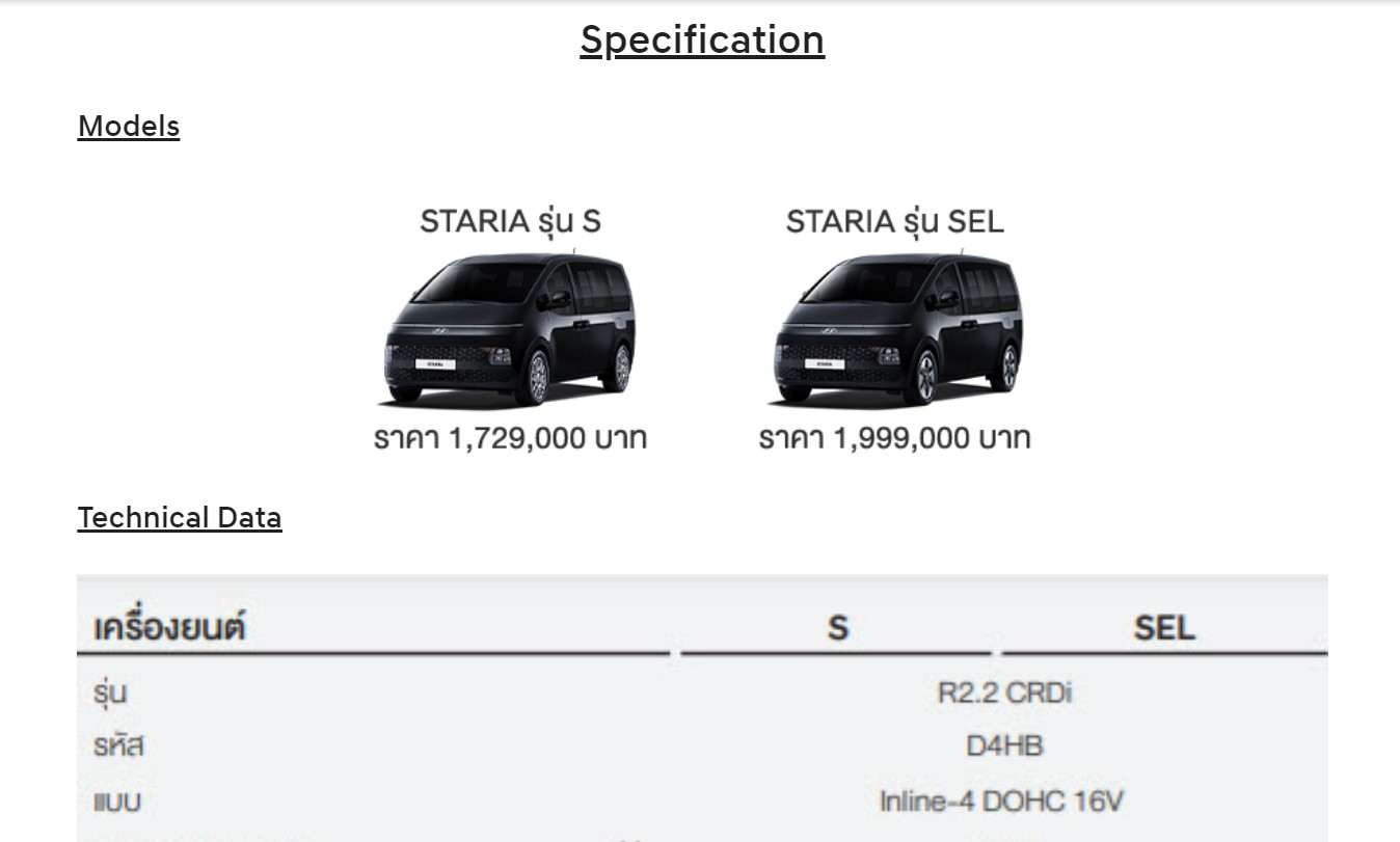 이렇게 좋은 상황에서 스타리아로 차명도 바꾸고 디자인도 워낙 큰 발전을 이루면서 태국에서 기대감이 상당했다. 결국 가격이 이전 모델들과 비슷한 가격을 형성하느냐가 중요했는데 이번주에 태국 출시가가 나왔다.