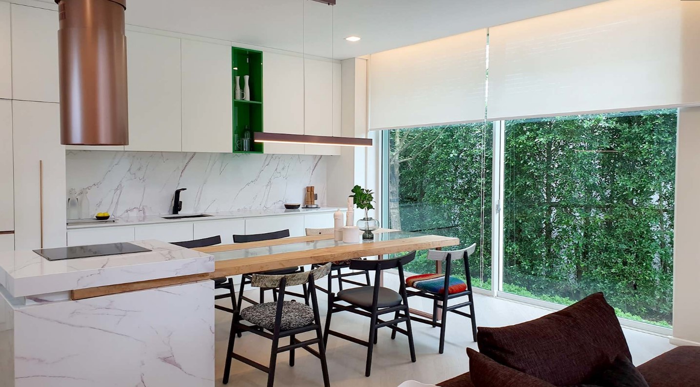 고급 주택 중에서 콤팩트 한 사이즈인데 위치가 도심에 가깝다보니 자연스럽게 그렇게 된것 같다. 태국 방콕에 대부분 몰려 살다보니 주택 단지들은 대부분 외곽에 있는데 이번 프로젝트는 도심이다. 태국 청담동으로 불리우는 통로지역과 붙어 있는 곳이 에까마이 지역인데 프로젝트 명에 에까마이가 포함되어 있다. 실제 주소지는 에까마이가 안붙을꺼다. 강남"권" 처럼 권역이다. 람인트라 자체가 워낙 땅이 넓고 무반(전원주택) 단지들이 많은 곳인데 고속도로가 있어 차량이 많이 없는 시간에는 빵빵 터져서 에까마이나 통로 지역으로 들어가기 좋지만, 출퇴근 시간이나 아이들 등하교 시간되면 그 넓은 길이 꽉꽉 막힌다. 그건 어디가든 방콕은 동일하다.