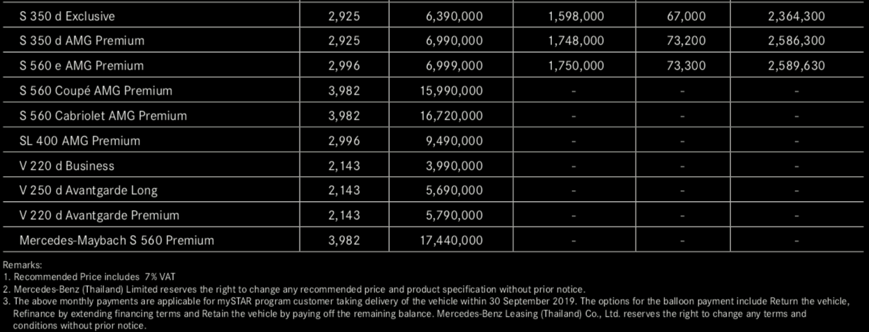 S 클래스의 경우 2억 4천만원이 넘어가니 어나더 레벨이라고 할 수 있겠다. 한국에서 1억 후반이면 자동차 브랜드에서 내세우는 플래그십 모델을 선택할 수 있지만 태국에서는 엔트리급 모델을 위주로 판매되고 있다고 볼 수 있다. 한국과 다른 분위기가 있다면 벤 종류가 판매량이 꽤 되는데 운전기사 문화가 아직도 많이 있기 때문이다. 사업체를 운영하거나 대가족 위주의 중산층 이상의 가정은 많이 탈 수 있는 차량을 이용하는데 가장 많이 이용하는 차가 도요타 알파드, 벨 파이어 그리고 폭스바겐 벤이다. 간혹 벤츠의 벤을 이용하는 경우도 있다.