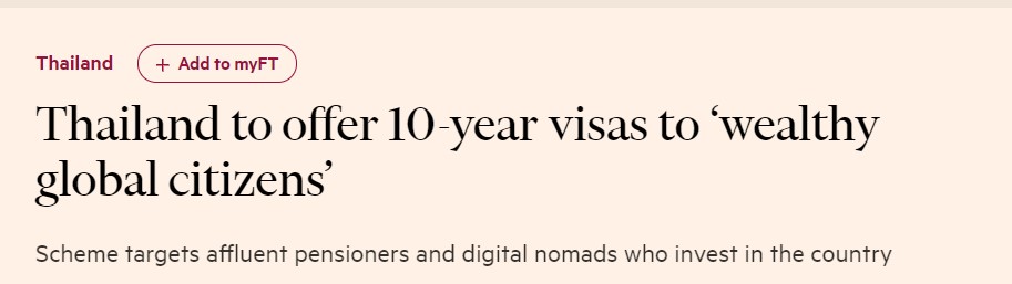 10년짜리 비자를 가족까지 주는 좋은 조건이지만 어떤식으로 진행 될지는 시행령이 나와봐야 알 것 같다. 현재의 비자들도 태국 공무원들의 특유의 일처리로 상당히 외국인이 피로감을 느끼게 하는 나라이기 때문이다.