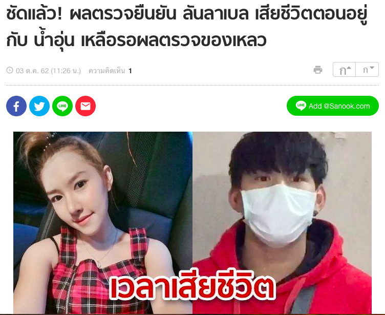 한국에서는 이제 상상도 할 수 없는 일이 발생했는데 연일 한명씩 뉴스에서 얼굴을 가리고 인터뷰를 하면서 자신의 혐의를 부인하고 있다. 아직 꽃 피워보지도 못한 젊은 여성의 사망 사건에 태국인들도 많이 주목하면서 결과를 기다리고 있다. 이번 기회로 그들이 부르는 "모델링" 이라는 서비스 자체도 사회적으로 지탄 받으면서 사라졌으면 한다. 한국에서는 상상도 못할 일이지만 성매매가 아니라 단순히 술을 따르고 흥을 돋구는 것으로 이야기하지만 실제로는 많은 사건 사고가 이어지고 있다.