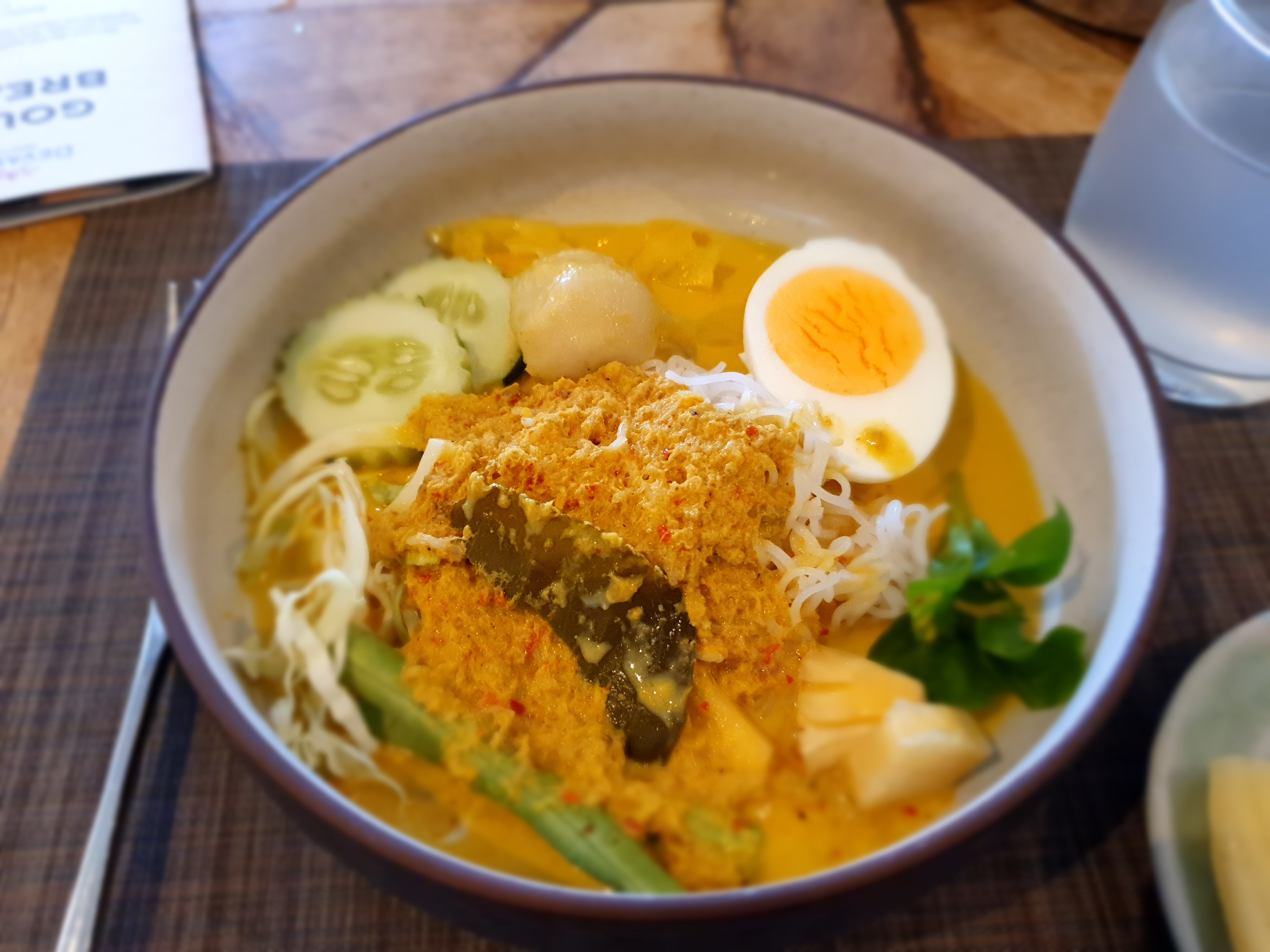 카놈찐이라고 부르는데 우리나라 국수면에 각자 입에 맞는 국물을 떠서 말아 먹는 식이다. 국물이 맑지 않은것이 대부분 생선으로 만드는데 곱게 갈아서 하더라도 우리 추어탕 처럼 그런 느낌이 난다. 파인애플이 안어울릴것 같지만 묘하게 어울린다.