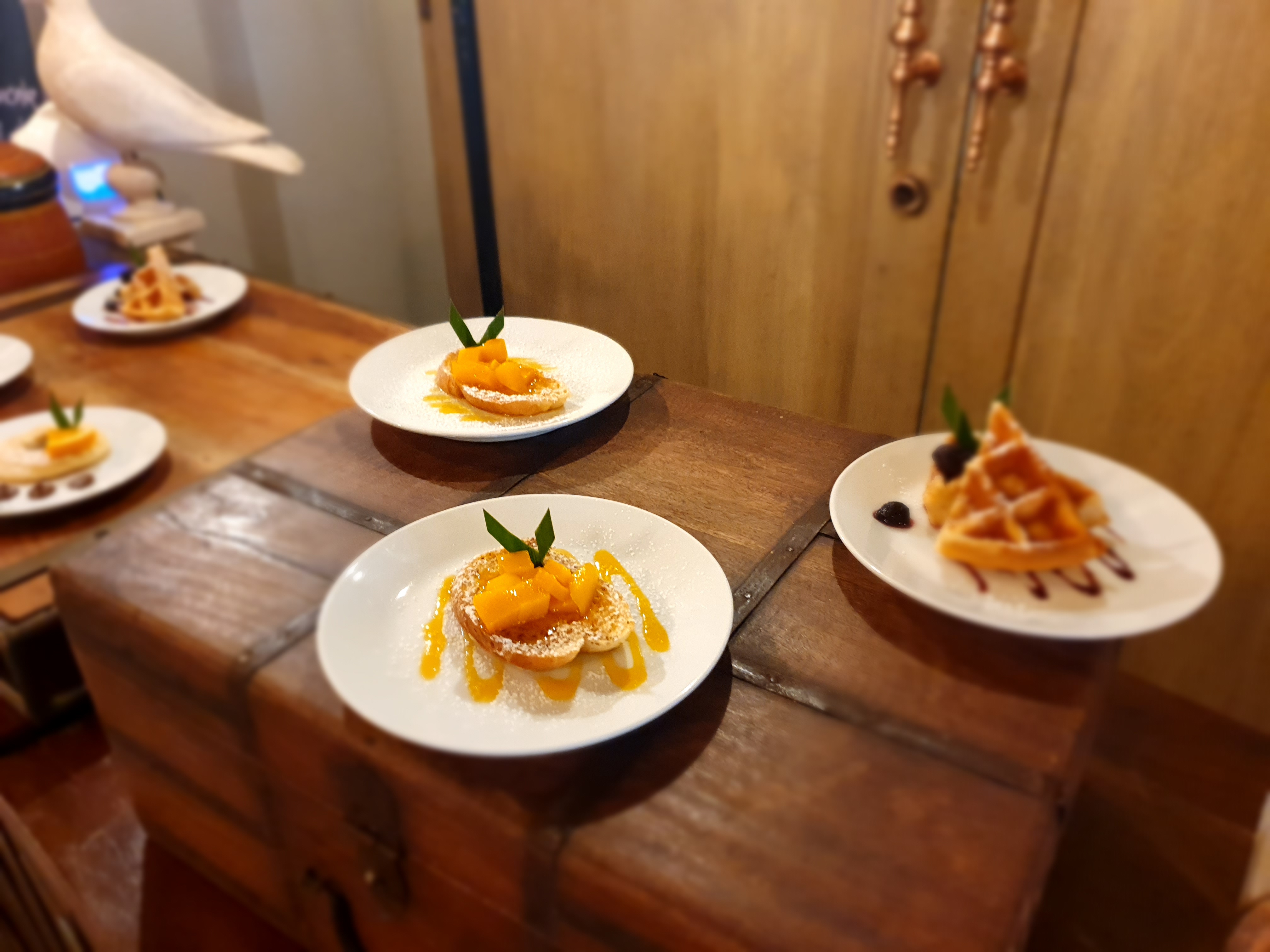 저렇게 아침에 만들어놓은 것을 들고가서 먹어도 되고 주문해도 된다. 가끔 와플 기계 놔두고 직접 해먹게 하는 호텔들도 있는데 얘기들이랑 가면 하루종일 그거한다고 아침을 못먹는다. 아예 딱 저렇게 해주면 편하다.