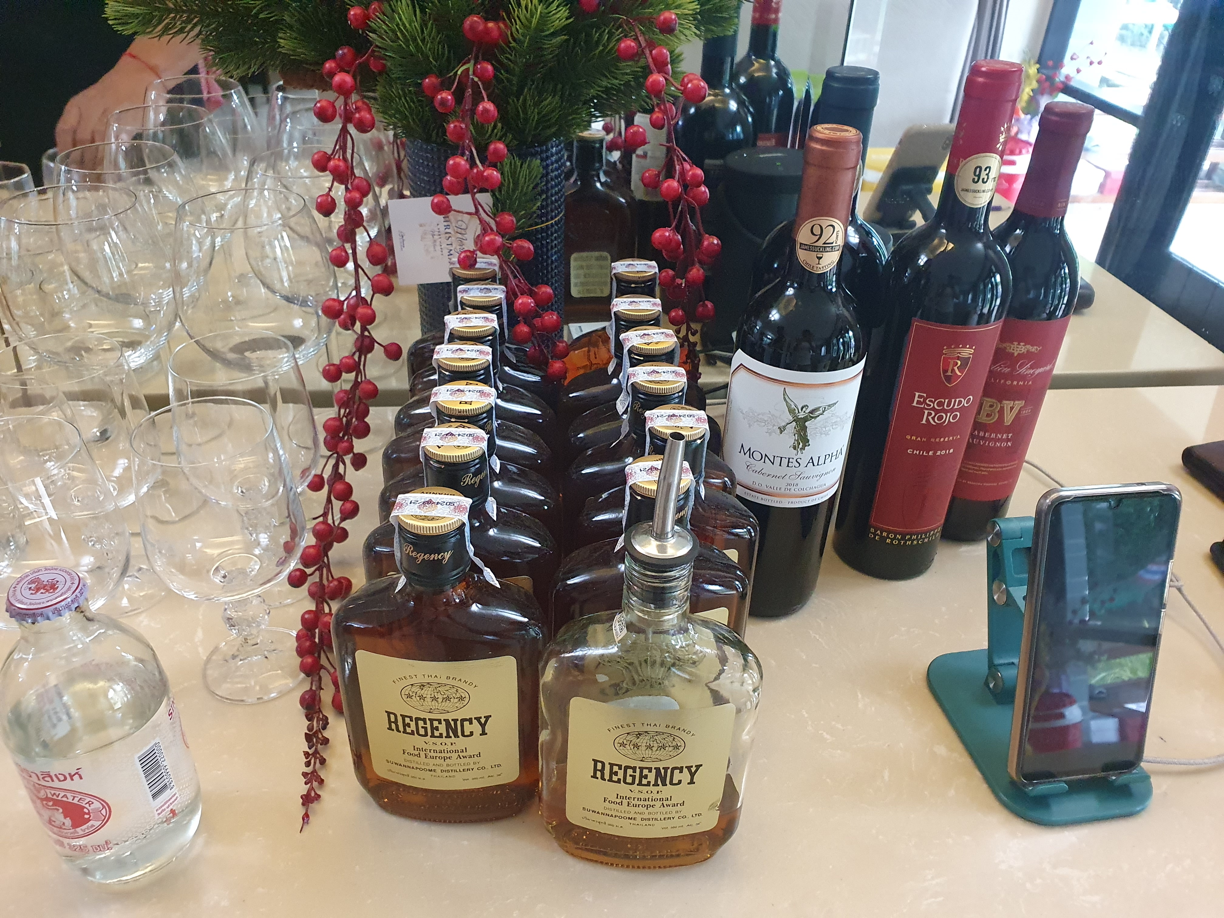 태국 국민술 리젠시다. 저런 색깔에 언더글라스에 먹으면 전부 양주로 칭하는 우리들이지만 태국 친구들은 은근 술에 대해 진지하다. 보통 레미 vsop 를 마시는데 수입이 안되서 박스로 못구하는바람에 리젠시 파티가 되었다. 리젠시도 태국에서 쉽게 살 수 있는 술이 이제는 아니다. 코로나 시대로 집콕 하면서 술 수요가 늘어난 것도 있지만 유통이 원활하지 않다는 이야기가 많아서 어디에 수량이 좀 들어왔다하면 품절이 나는 사태까지 벌어지고 있다.