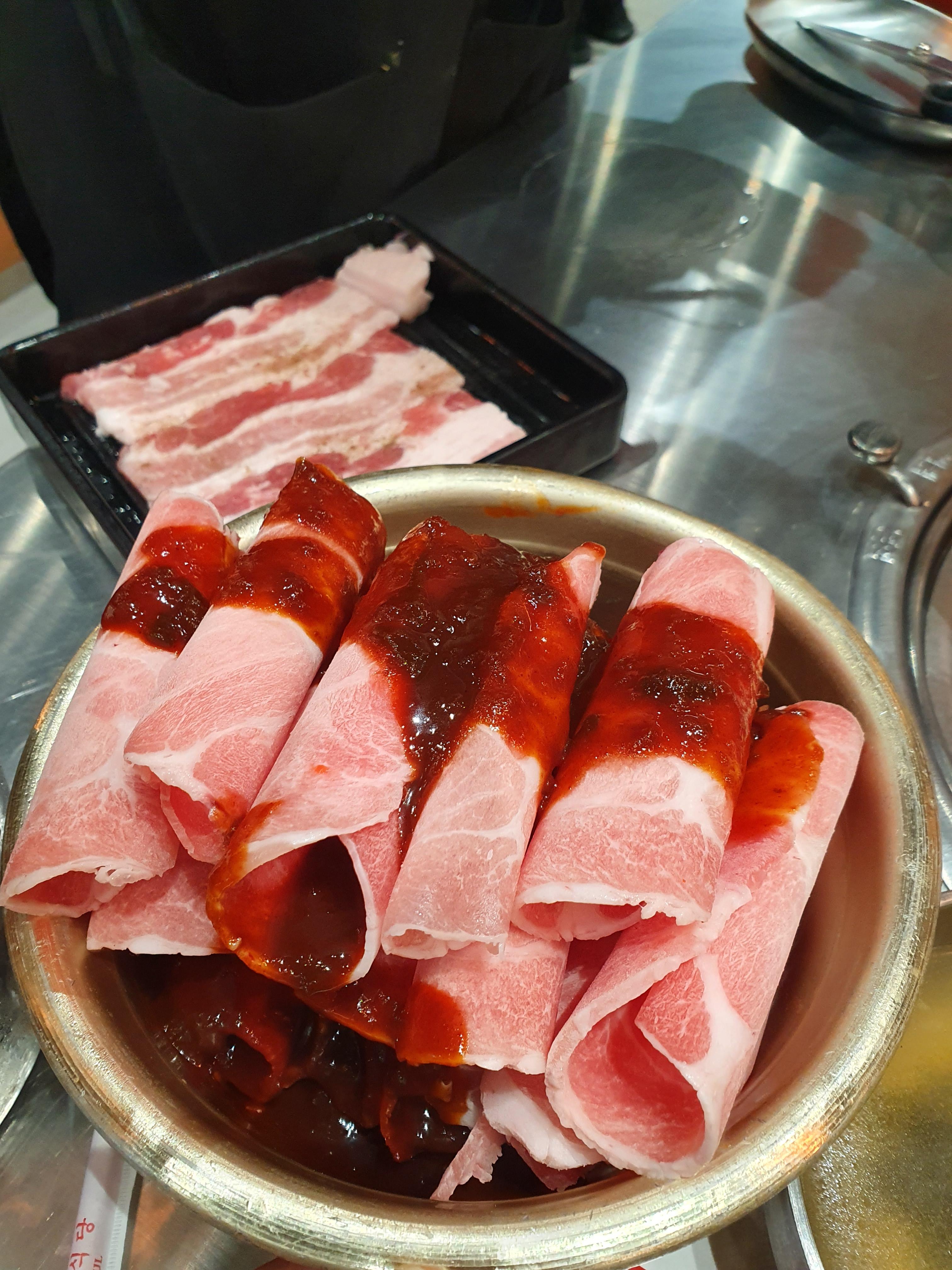 인상적인 부분은 깻잎이다. 대부분의 태국인 아니 거의 99%는 깻잎을 안먹는다. 그런데도 한국 그대로의 느낌을 살리려는 의지에서인지 제공된다. 이런 작은 부분들이 현지화를 하면서 본연의 느낌을 탈락 시키는 요소가 되는데 손해를 감수하더라도 유지하려는 모습이 상당히 긍정적으로 보였다.