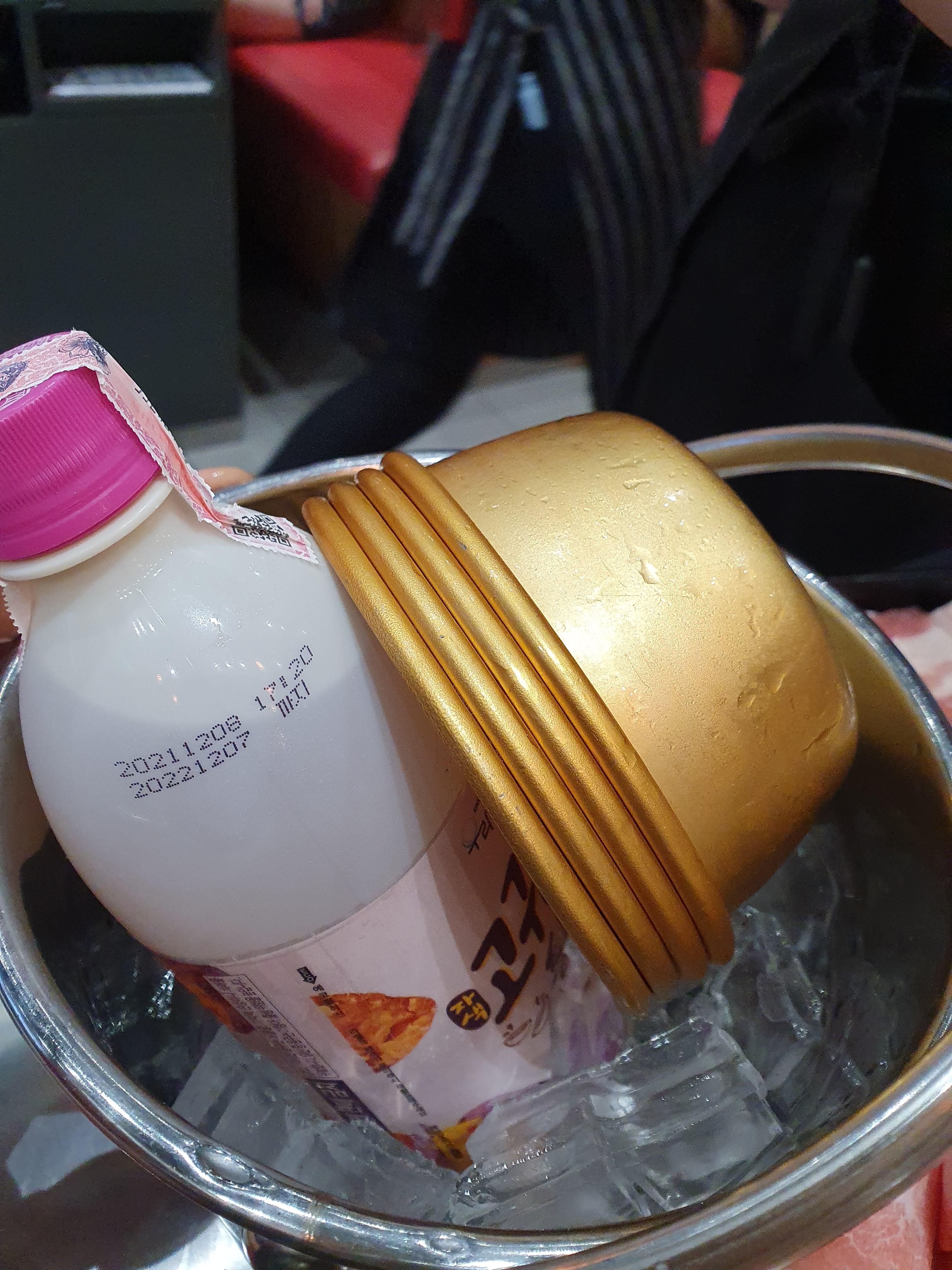 한국 새마을 식당에서 막걸리를 시킨 적이 없어서 기억이 안나는데 얼음통에 담아서 주니까 메뉴판에 영어 설명처럼 코리아 라이스 와인이 된 것처럼 마실 맛이 난다. 술을 하는 자리는 아니였지만 한국 음식을 소개하는 자리에서 막걸리를 겯들이면 괜찮을 것 같아서 시켰는데 새로운 분위기를 만들어서 괜찮았다.