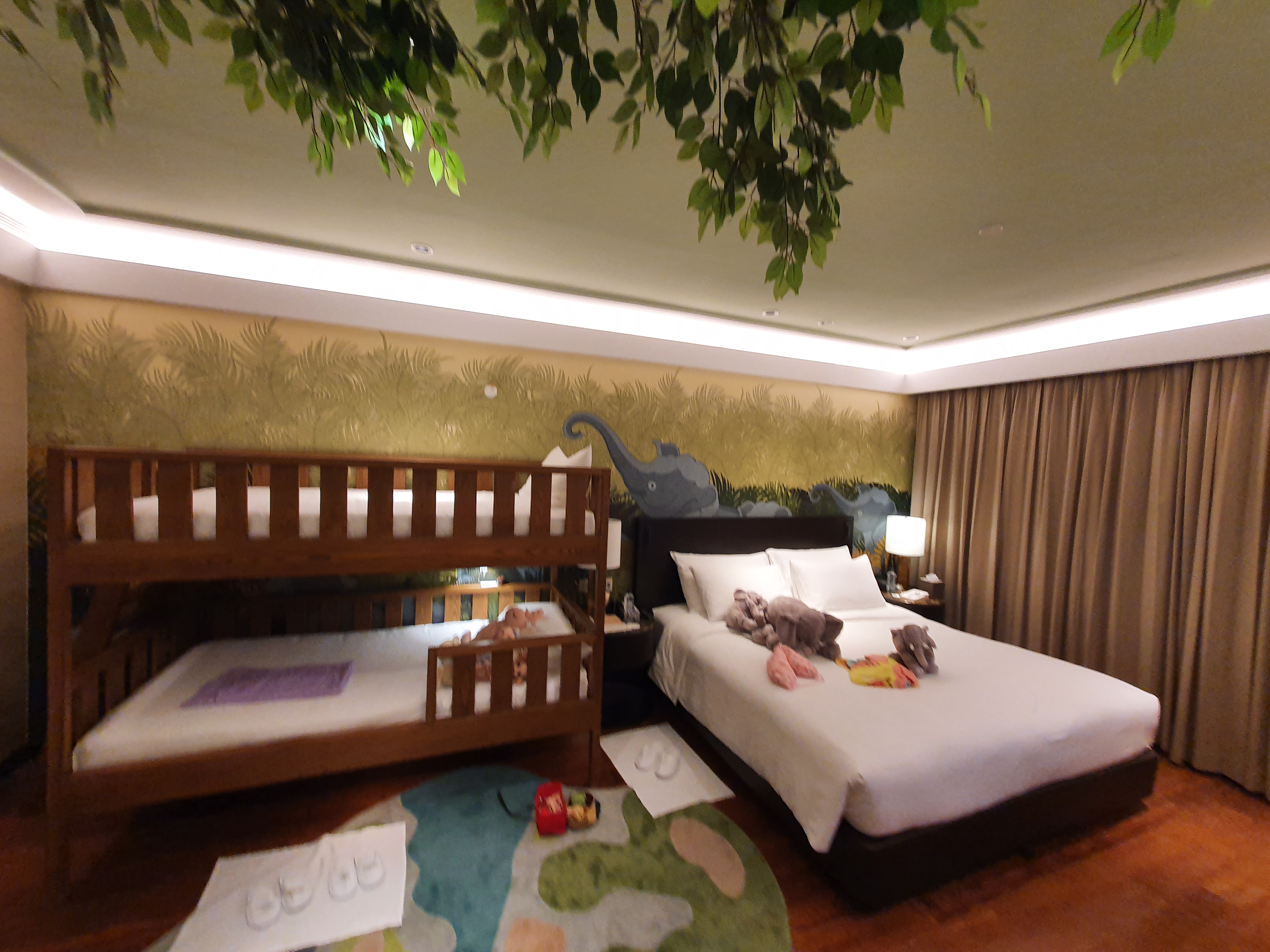 카바나룸의 장점이라면 1층이라 수영장으로 바로 풍덩 들어갈 수 있다는 장점이 있다. 아무래도 태국에 살다보면 수영장 붙은 타입은 자주 가다보니 사생활 보호도 덜 되고 벙커베드를 아주 원했기에 1베드, 2베드 테마 페밀리룸 스윗룸도 괜찮은 선택이였던거 같다.