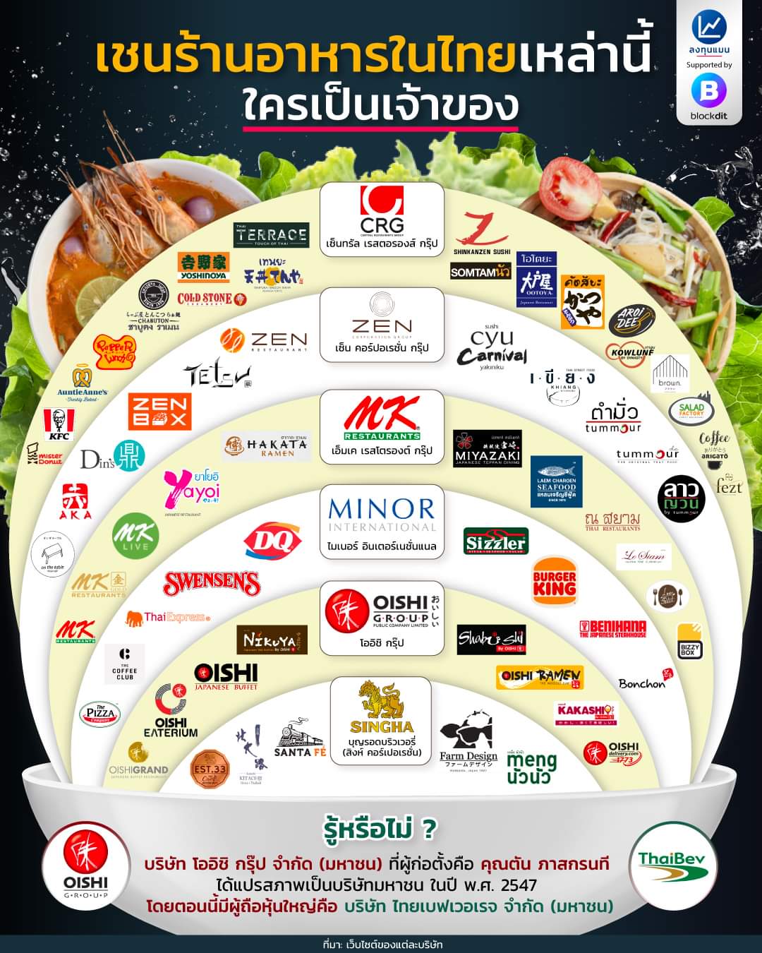 태국 대기업이 운영하는 레스토랑 프렌차이즈 (MK수끼, KFC, 쏨땀누아,오이시, 스웬센, 버거킹, 아카, 콜드스톤, 가쯔야, 페퍼런치, 미스터도넛)