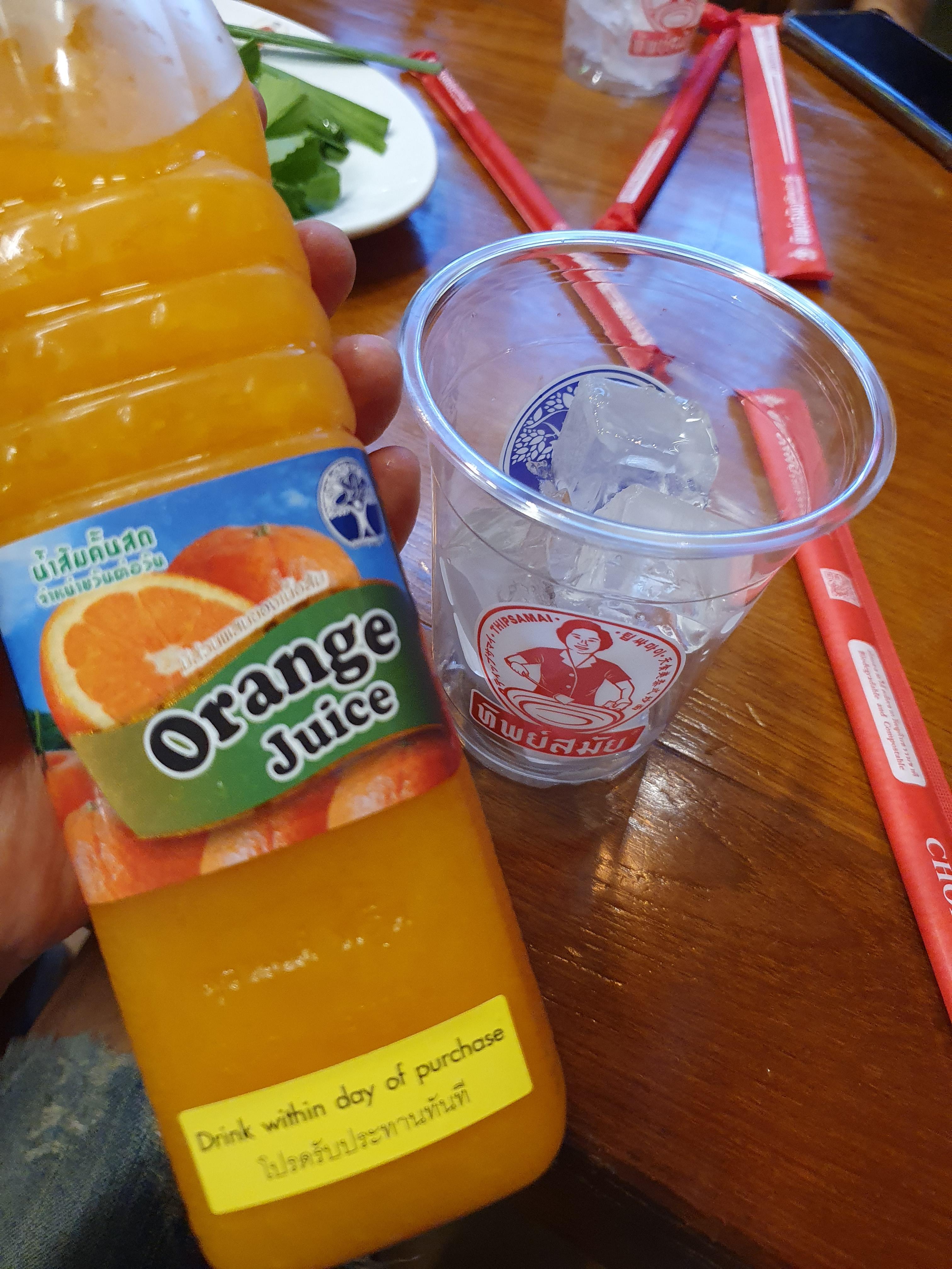 이경규가 태국에 와서 TV 촬영을 하면서 뼈때리는 직설로 음식을 평가했는데 유일하게 극찬을 했던 오렌지 쥬스다. 알갱이가 덩어리로 들어가 있다. 유통기한을 보면 알겠지만 신선도를 최고로 유지하기 위해서 노력하는 모습이다. 집에서 태국 오렌지를 특히 쥬스용으로 구해서 직접 해먹어도 저런 맛이 안난다. 아무래도 본인들이 가지고 있는 농장에서 쥬스에 가장 알맞게 키워진 오렌지를 사용하는 것으로 보인다. 안그러고는 저 맛을 낼 수가 없다. 미각이 예민한 사람이라면 알 수 있다. 확실히 다르긴 다르다.