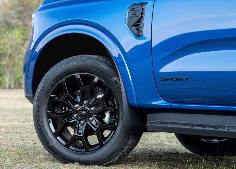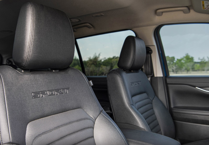 두번째 가장 많은 판매율을 기대하는 스포츠 트림이다. 20인치 합금 휠이 들어가고 최상위 모델과는 동일한 모습이고 전면부에 에베레스트 레터링이 붙고 휠은 검정색이다. 후면부는 스포츠 배지가 부착된다. 엔진은 트렌드와 동일하다. 스포츠 모델과 티타늄의 가장 큰 차이는 터보가 1개냐 2개로 나뉘고 차량 내부 중간에 미국스타일로 정직하게 넣은 디스플레이는 10.2인치와 계기판 8인치 디지털이 티타늄부터는 12.4인치로 바뀐다.