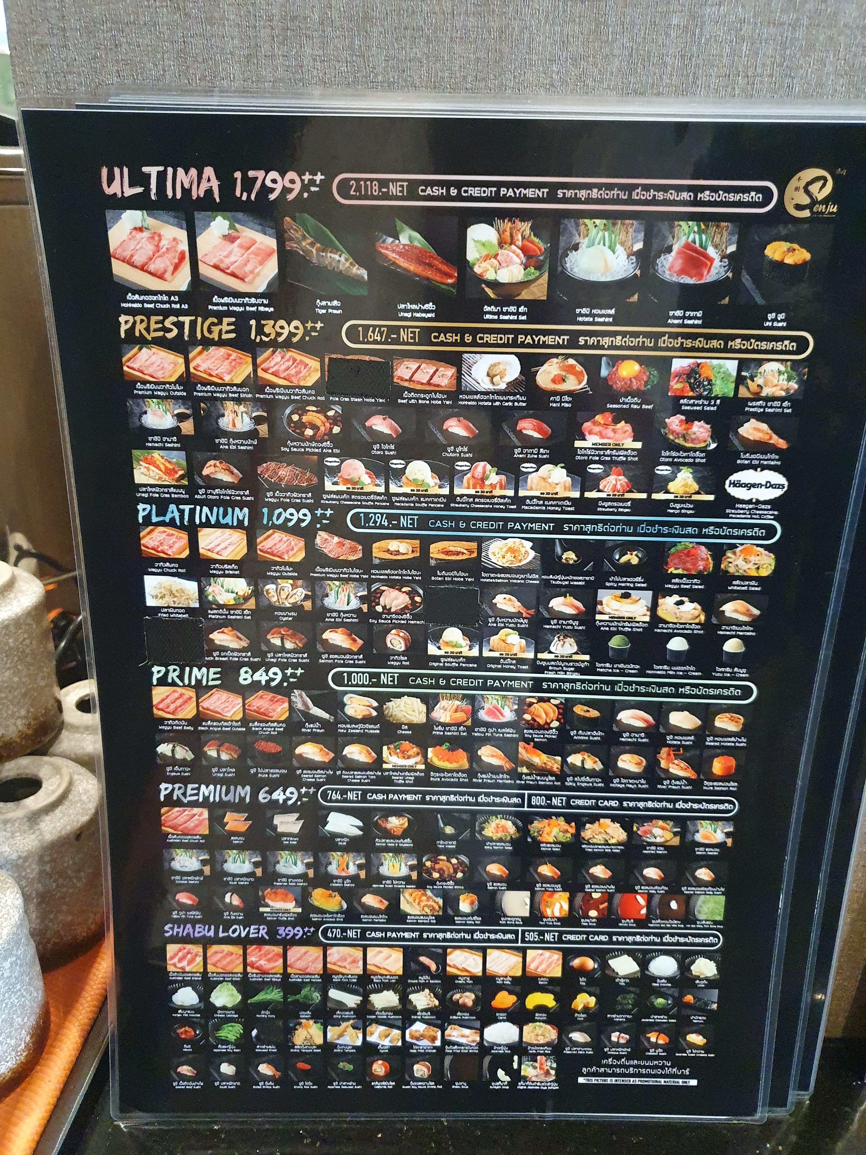 제일 아래 SHABU LOVER 라는걸 선택했는데 399바트에 ++ 이니까 현금으로 하면 470바트, 카드로 하면 505바트라고 나와있다. 음료 포함이니 다른데보다 가격 경쟁력은 있는 편이다.