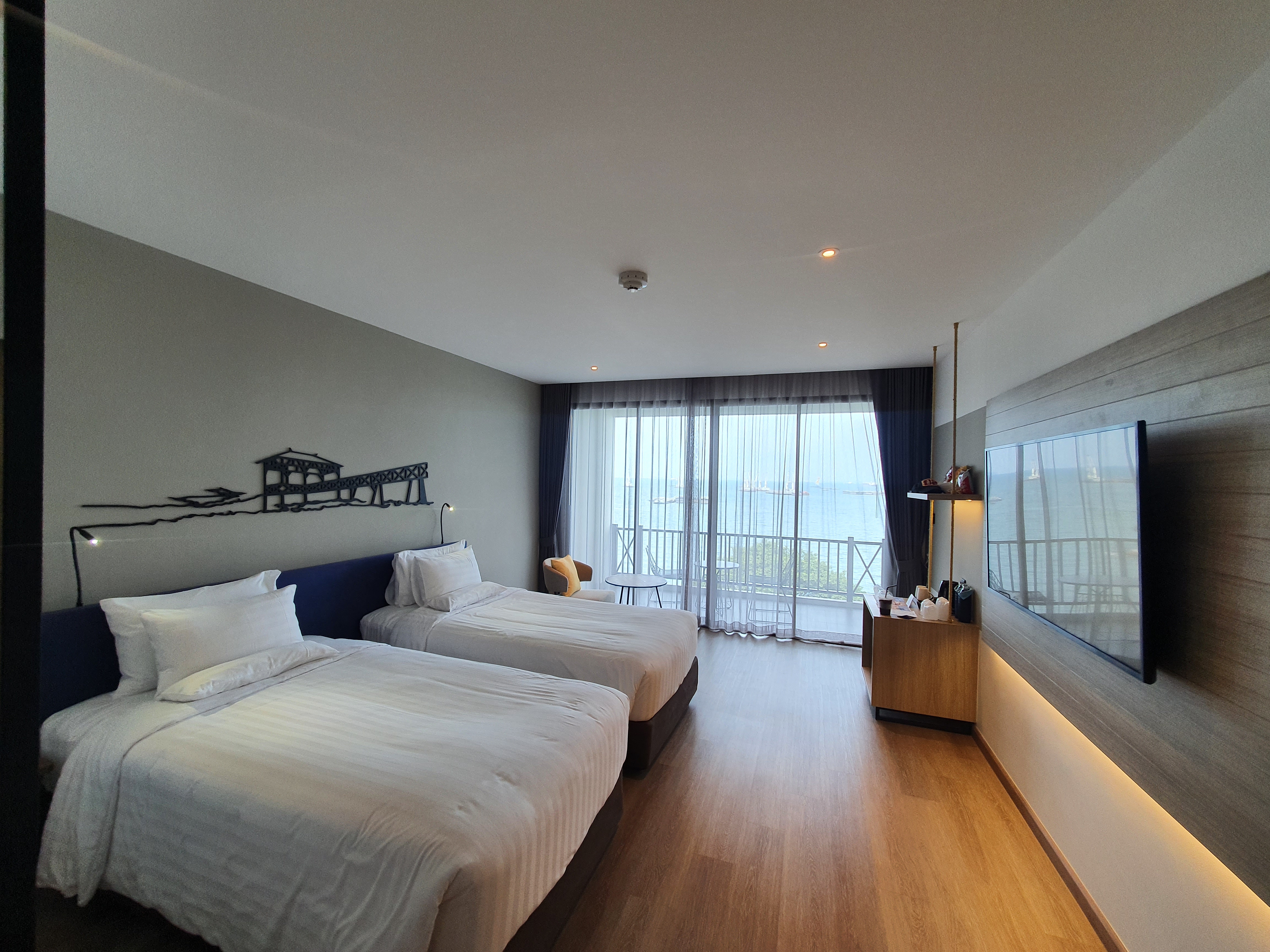 노보텔의 정식 명칭은 "Novotel Marina Sriracha & Koh Si Chang"이다. 주의해야 할 점이 있는데 호텔이 두 군데 있기 때문이다. 호텔 예약사이트에서 검색해서 노출되는 곳은 코 시창 섬에 있는 것이 아니라 시라차 쪽 육지에 있는 호텔이다. 육지에 있는 호텔을 필요에 따라 이용할 수 있겠지만 코시창 섬 여행을 위해 예약을 하는 것이라면 반드시 섬 쪽으로 선택을 해야 한다. 보통 시작가를 육지에 있는 곳을 노출시키고 룸타입을 높이다 보면 섬 쪽이 선택 가능하다.