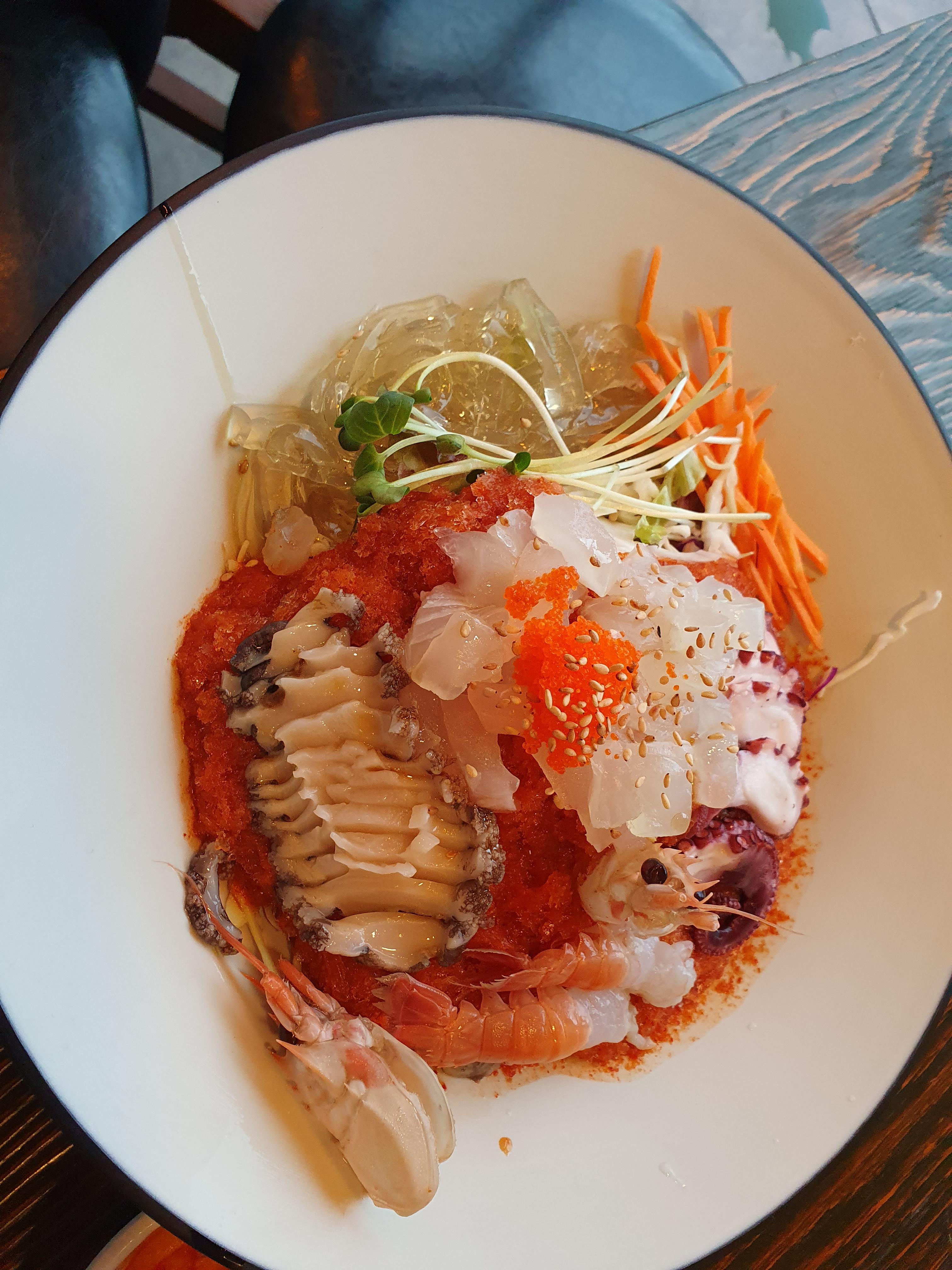 물회는 솔직히 감흥이 없는 음식이었다. 그런데 바당 한 그릇에서 물회를 먹고 나서 인식이 완전히 바뀌었다. 경상도 쪽에서는 물회에 밥이 들어가 있는 경우가 많다. 친구가 한 숟가락 뜨자마자 "공깃밥 시키서 나눠먹자"라고 한다. 진리였다.