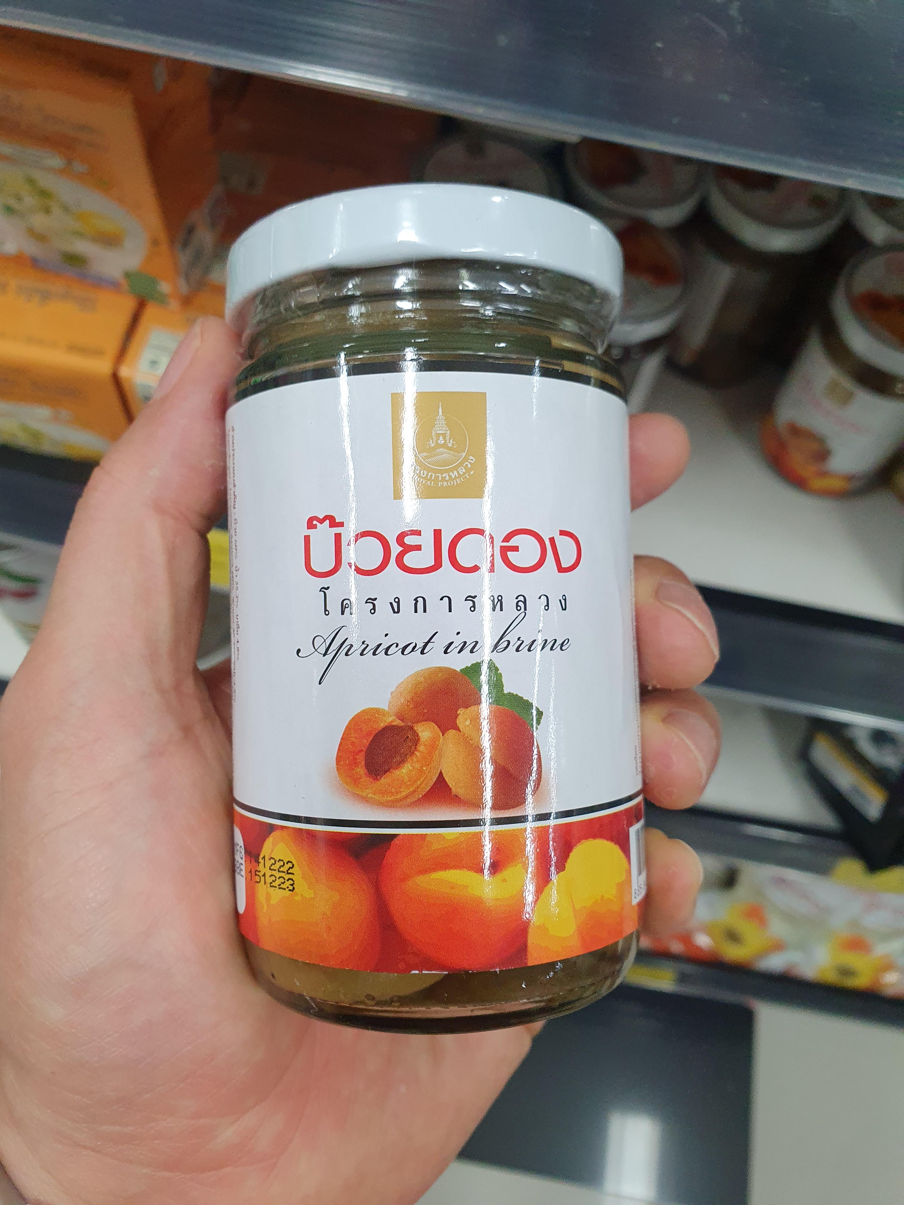 태국 왕실에서 지역 특산물에 대한 진흥을 위해서 각종 제품을 검증하고 인증 마크를 붙여서 시중에 유통이 된다. 살구는 태국 북부 지방에서 꽤 많이 나오는데 한국과 먹는 방식이 조금 다르다. 대부분 유통되는 태국 살구제품은 건조시켜서 새콤한 맛을 아주 강한 게 특징인데 설탕보다는 소금에 절여서 유통기한도 늘리고 감칠맛을 추가하는 게 특징이다.