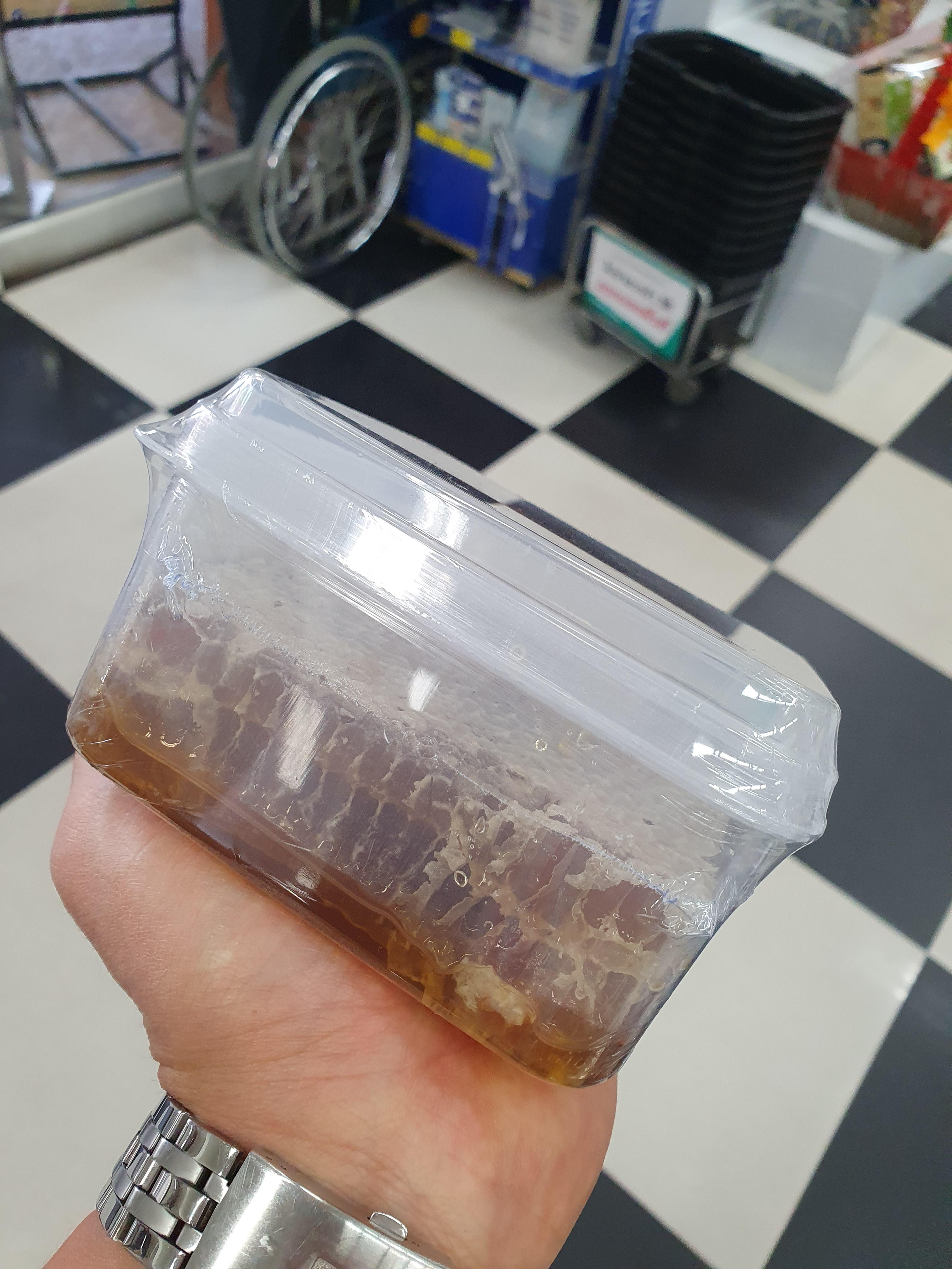 무슨 일인지 아이가 계속 벌집꿀을 먹고 싶다고 한다. 호텔에 가면 가끔 나오는데 그런 기억 때문인지 유튜브 보면서 본 건지 모르겠지만 벌집꿀을 찾길래 온라인으로 찾으면 품질을 알 수 없어서 직접 눈으로 보고 살 수 있으면 사주려고 하고 있었는데 슈퍼마켓에서 판매하고 있어서 살 수 있었다.