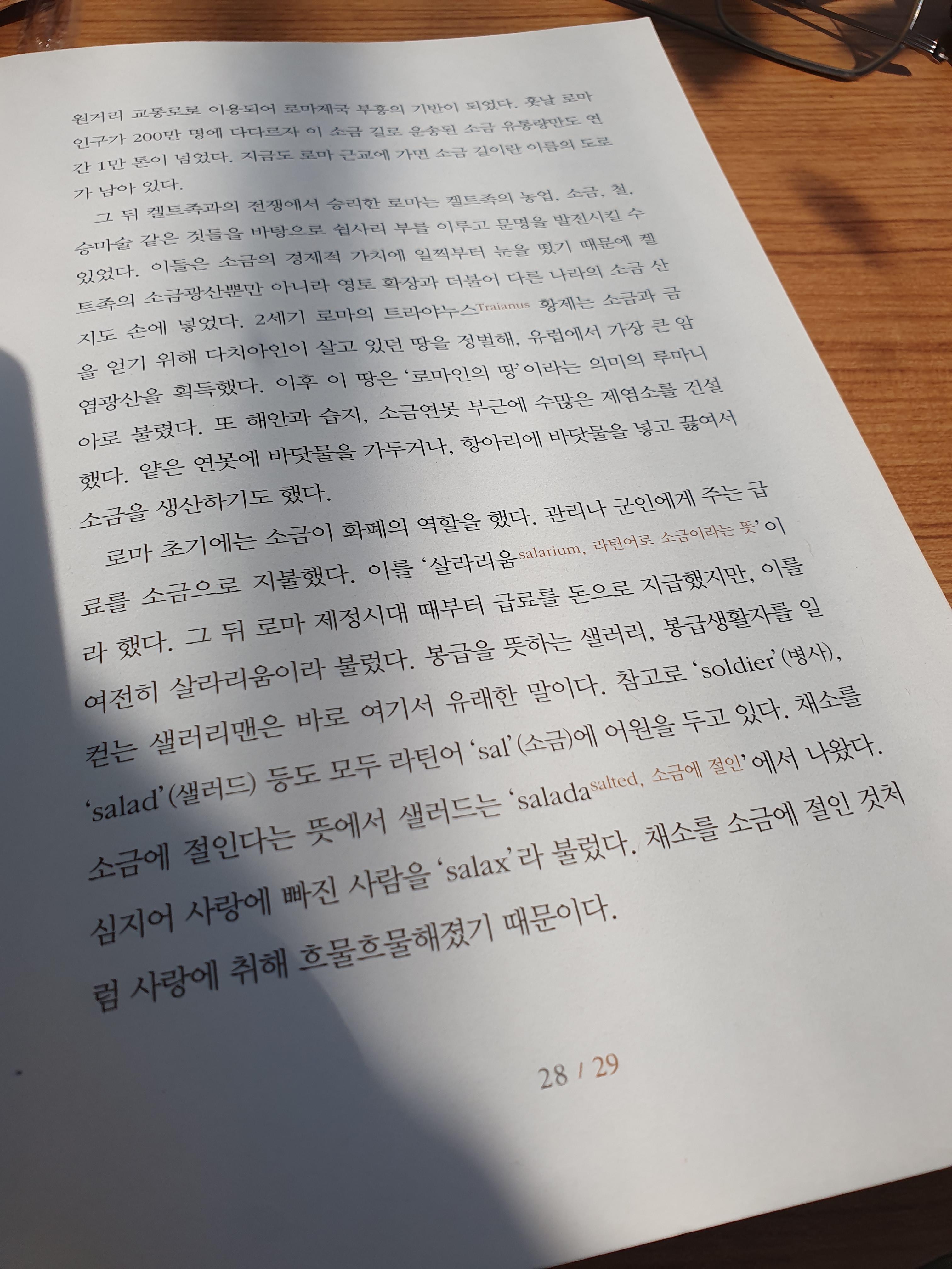 로마 초기에는 소금이 화폐의 역할을 했고 군인에게 주는 급료를 소금으로 지불했다고 한다. '살라리움 Salarium 라틴어로 소금이라는 뜻'이라 했다. 그래서 봉급생활자를 일컫는 샐러리맨은 바로 여기서 유래했다고 한다.