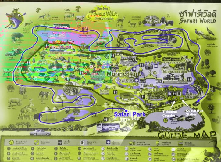 사파리 파크(Safari Park)와 마린 파크(Marine Park)로 구분되어 있다. 사파리 파크는 자가용으로 둘러볼 수 있는데 카우키여우 오픈주처럼 차량으로 움직일 수 있지만 내려서 둘러 볼 수 없다. 그것이 차이점이고 거의 아프리카 같은 느낌이다. 잘 꾸며 두었다. 그리고 마린 파크는 우리가 생각하는 동물원이다. 입장권을 보여주고 들어가서 걸어 다니면서 동물 구경하고 중간중간 쇼 구경을 할 수 있도록 해둔 동물원이다.