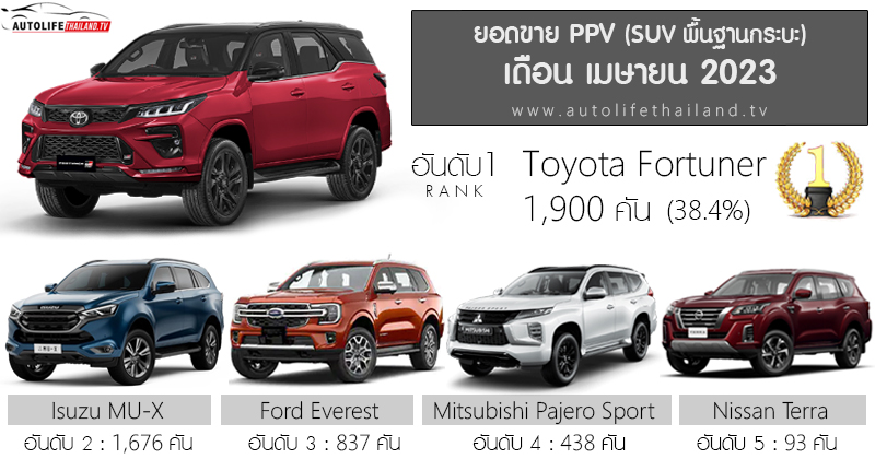 험지를 돌파할 수 있는 PPV 는 태국처럼 도로 사정이 좋지 않은 동남아시아 국가에서 사랑받는 넓은 범위의 SUV로 도요타가 부동의 1위를 차지하고 있지만 이스즈 뮤엑스도 상당한 저력을 보여주고 있다. 풀체인지된 포드 에베레스트보다 두 배 이상 판매량이 아직도 나오는 거 보면 말이다. 저 세그먼트에서 가장 부드럽고 승차감이 좋다는 평가가 많지만 방콕보다는 지방에서 압도적으로 인기가 많은 모델이다.