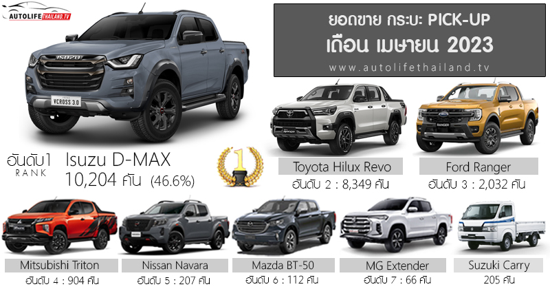 가장 최근 판매율을 보아도 이스즈의 디맥스(isuzu D-max)가 도요타 하이럭스 레보를 꺽고 1위를 차지하고 있는 모습이다. 1만 대 이상 판매하고 점유율도 상당히 높다. 3위를 차지한 포드는 레인저를 풀 체인지한 모델로 신차지만 1위와 2위 근처에도 못 미친다.