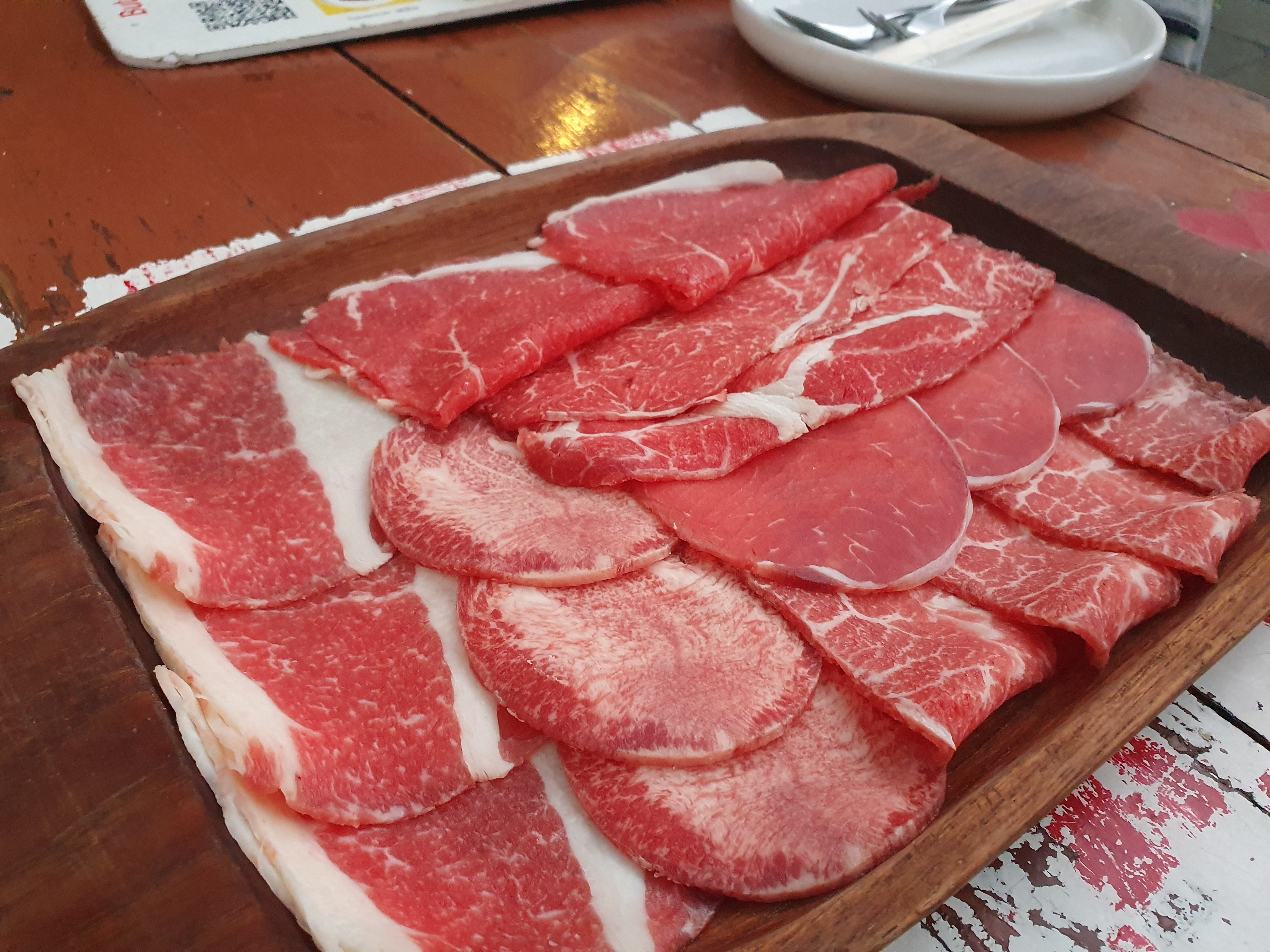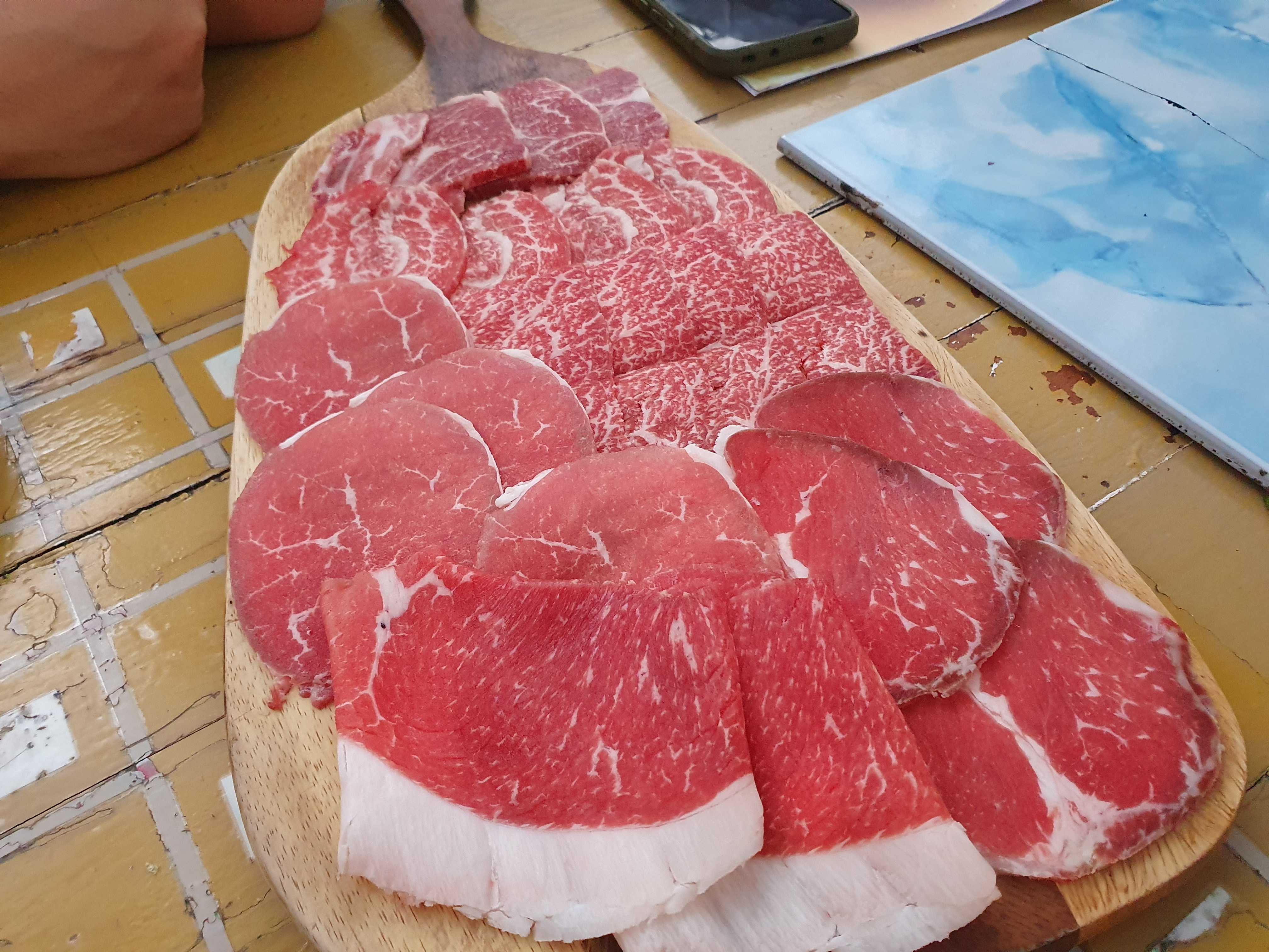 소고기가 품질이 좋거나 가격이 저렴한 편은 아니지만 에까마이에서 가까워서 모임하기 편한 위치였지만 차량이 없으면 힘들고 술까지 한다면 택시 타고 들어오고 나가기에는 조금 애매했다. 주변 무반 단지 사람들이 꽤 좋은 관계를 유지하면서 단골손님 장사하는 느낌이다. 다른 테이블도 보면 소고기 덮밥 아이들이랑 얼른 먹고 가는 집들이 있고 동네 사람들이 친구들 불러서 외국인들이랑 소고기랑 쏨땀이랑 같이 맥주 한잔하는 게 참 로컬스러운 소고기 집이다 싶었다.