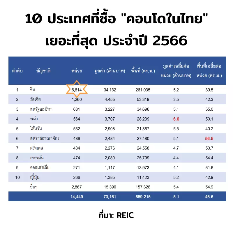 태국 내 부동산 구매 국적별로 순위를 매겼는데 1위는 중국이 차지했다. 2위는 러시아 3위는 미국 4위는 미얀마 5위는 대만이 차지했다. 한국은 순위에 없고 10위에 일본이 링크되어 있다. 중국인들은 해외 부동산 구매를 중국 정부에서 막지만 않았더라도 더 많은 부동산을 소유했겠지만 말이다. (순위의 기준은 면적이다)