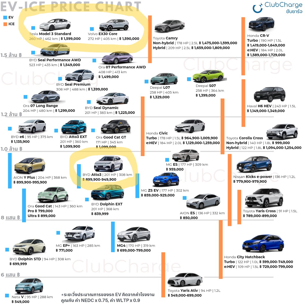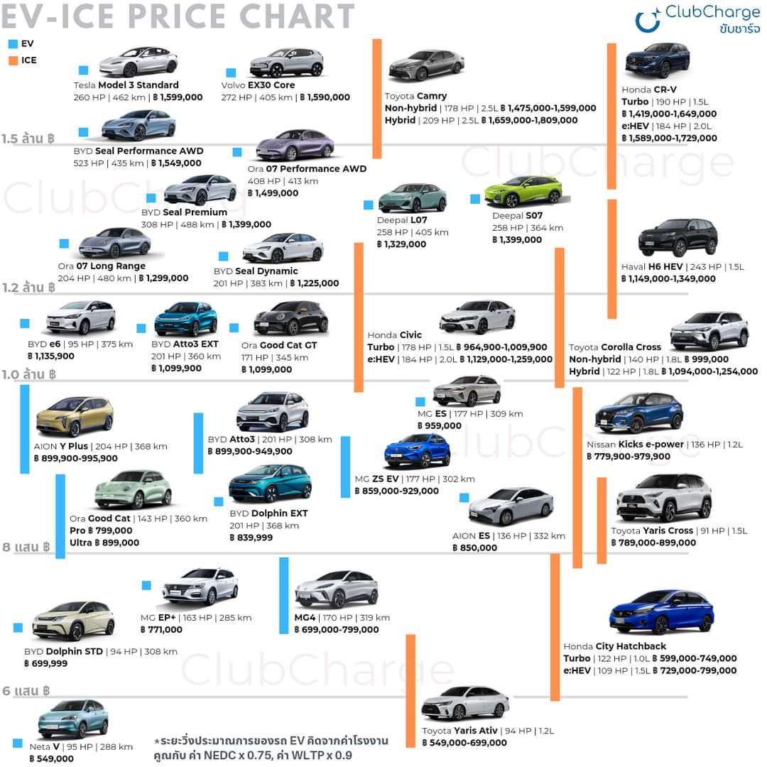 또한 가장 높은 가격대를 형성하고 있는 테슬라와 볼보의 가장 저렴한 모델인 모델3와 EX30 의 경우 1,590,000 바트 (한화로 약 5천9백만원)으로 책정되어 있다. 이번에 현대 아이오닉 5가 출시했는데 가장 저렴한 모델이 1,699,000 바트로 두 모델보다 400만원 정도 비싸다. 단순 환율로 가격만 봐서는 안되는데 태국 시장에서 체감상 어떻게 다가오는지 확실히 알 수 있는 부분이다.