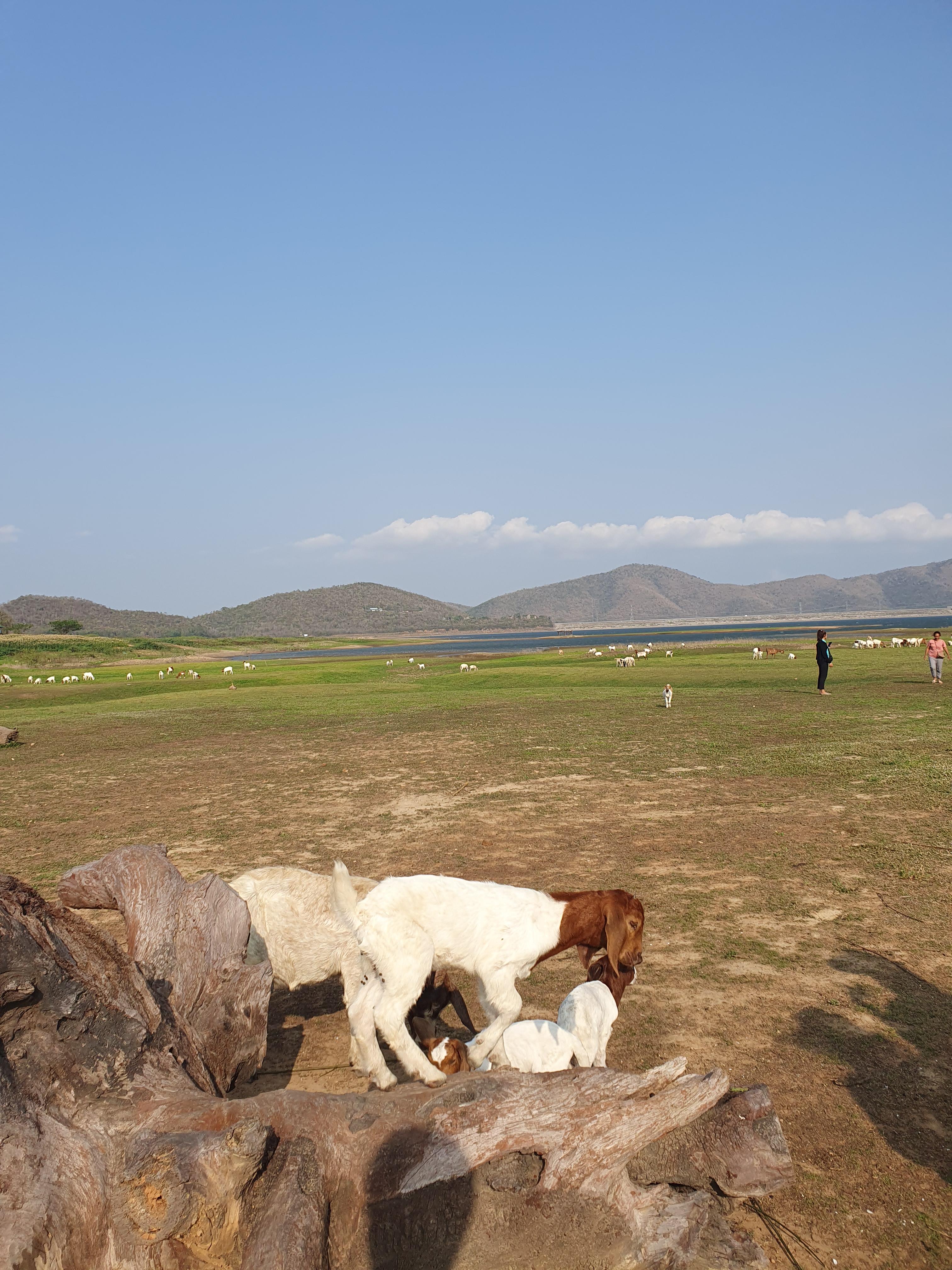 댐에 물이 빠진 곳에 풀이 자라고 염소들을 풀어 놓는데 워낙 댐이 크다 보니 물이 빠진 곳에 풀이 난 풍경만 봐도 멋지다. 캠핑용 의자를 들고 가서 앉아서 시간을 보내는 것도 좋지만 라차부리에서 즐겼던 스타일이지만 그곳은 상인들이 들어와서 음식 등 구할 수 있는 게 많지만 프란부리 댐은 생각보다 깊고 인적이 드문 곳이라 그런 것들이 없다.