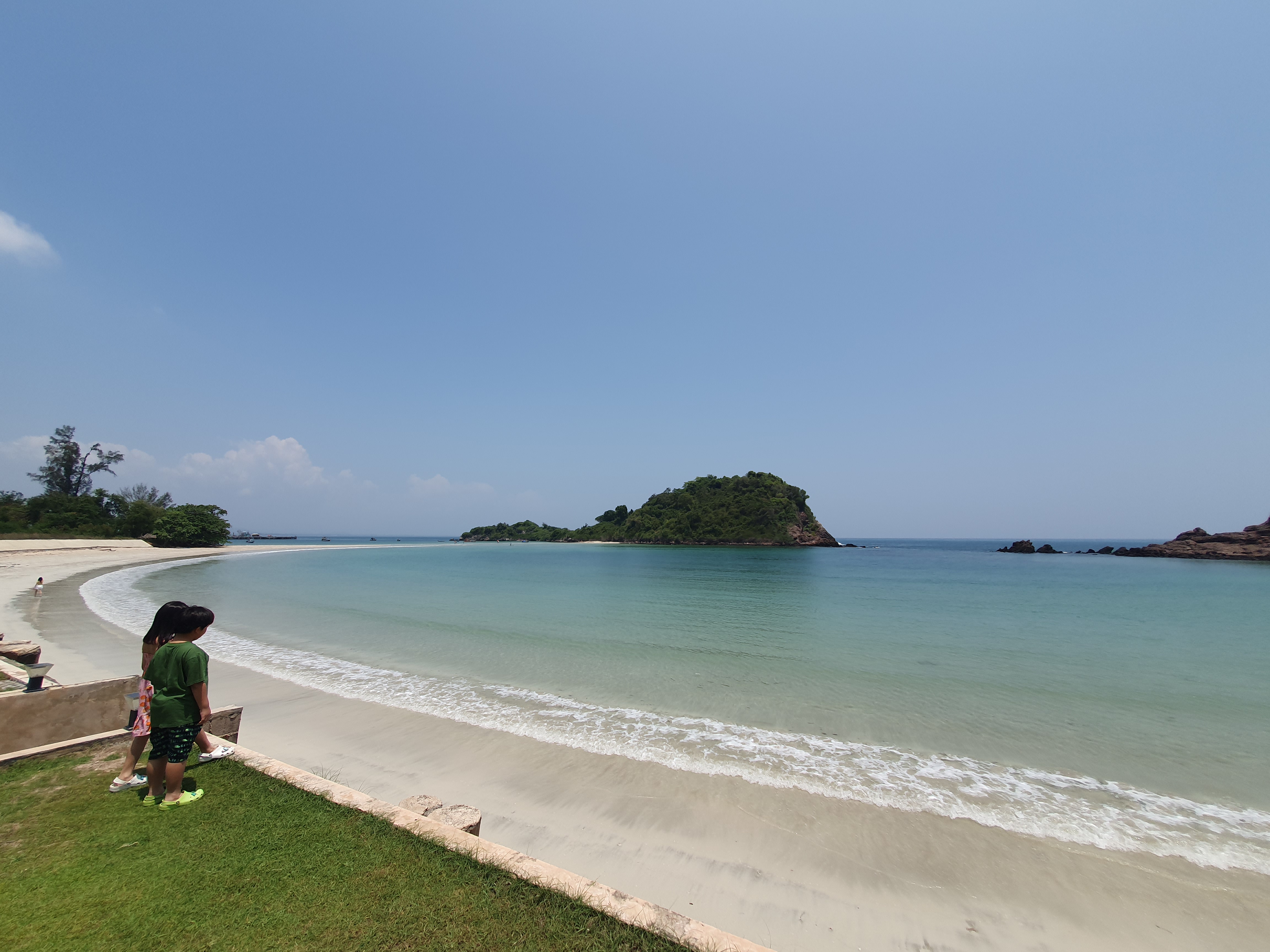 왼쪽으로 쭉 걸어가면 섬으로 들어갈 수 있고 오른쪽으로 쭉 가면 육지가 저만큼 나가 있다. 가운데만 뚫려 있는데 바닷물이 저기로만 들어와서 바다가 다른 곳보다 훨씬 잔잔하고 얕다. 물이 빠졌을 때는 중간까지 가도 성인 가슴까지 밖에 안오니 아이들이 수영하고 놀기에는 너무 좋다.