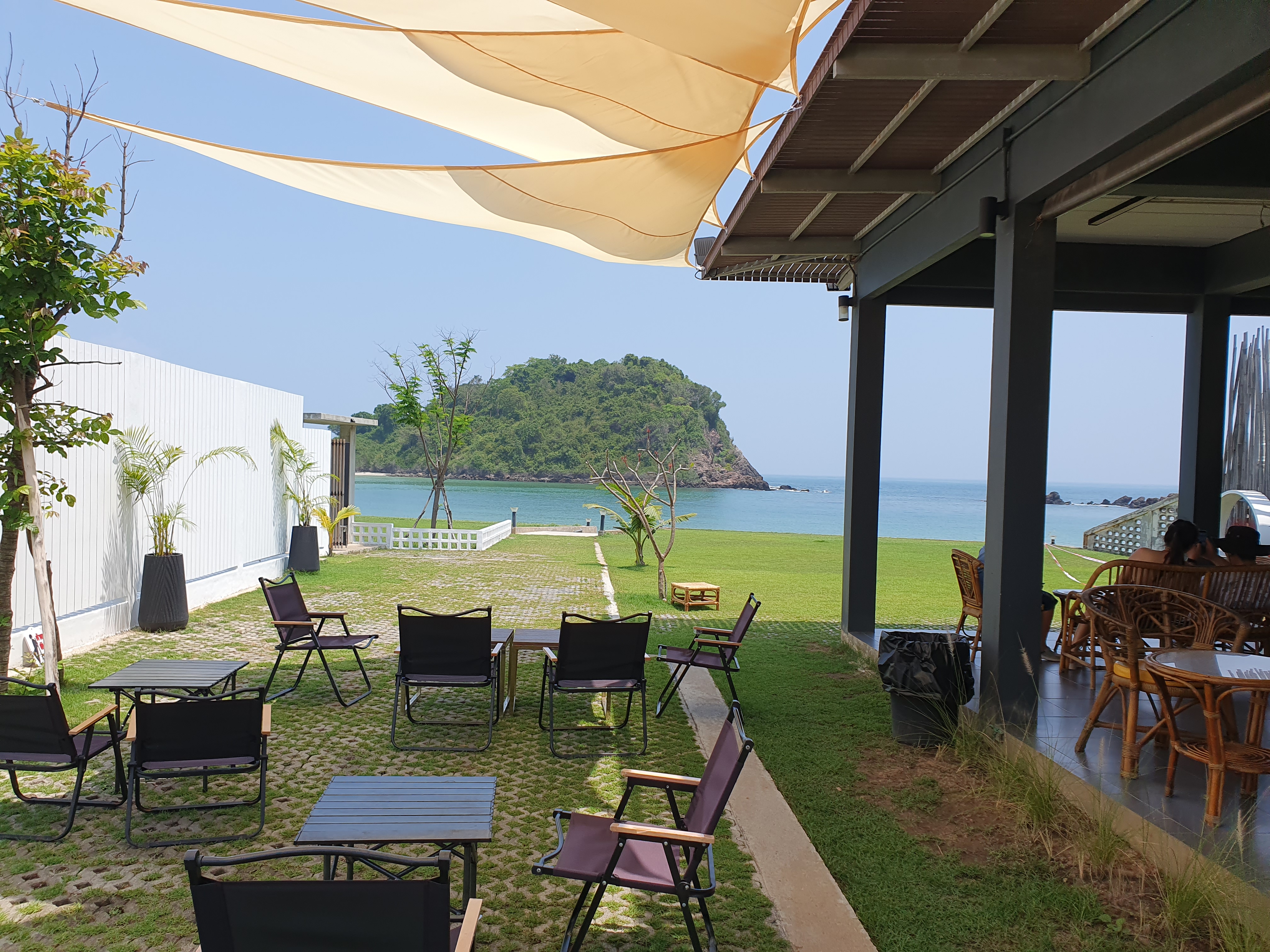 수다 빌라와 카페가 붙어 있다. 그래서 숙박을 하지 않는 여행객들은 카페에 와서 사진도 찍고 시간을 보내는데 카페도 충분히 뷰가 좋고 맛도 좋은 편이다. 다른 점이 있다면 숙박하면서 하루종일 뷰를 즐길 수 있고 카약 등 수상레포츠를 즐길 수 있느냐 없느냐가 차이이지 않을까 싶다. 호텔 체크인을 하면 주는 웰컴 드링크를 카페에서 준다. 그래서 카페를 생각보다 자주 가게 된다.