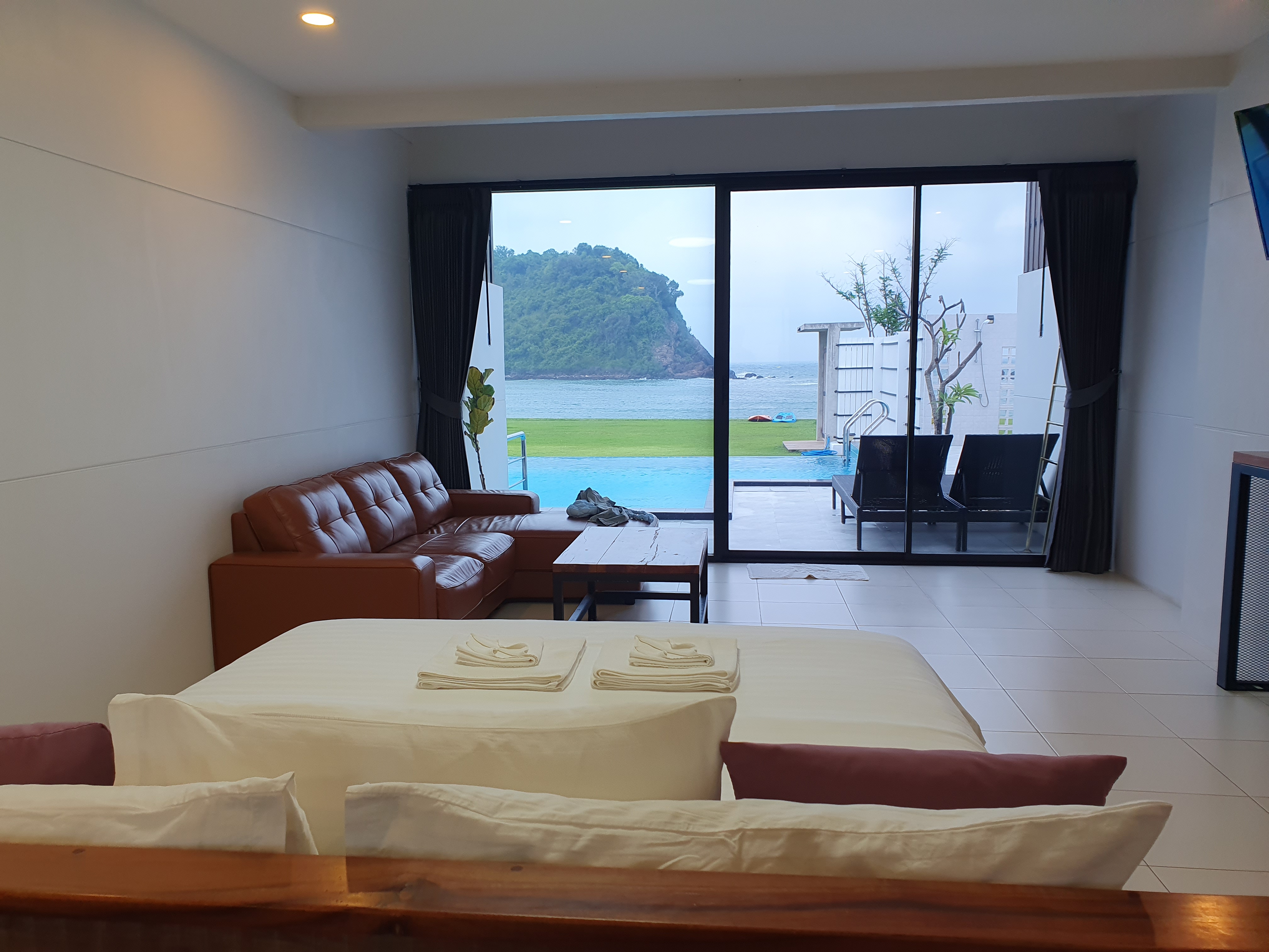 생각보다 방도 넓고 깨끗하다. 후아힌에 즐비한 5성급 호텔이나 4성급 호텔 수준에는 미치지 못하지만 뷰가 정말 백만불짜리다. 바다와 수영장이 같이 보이는데 바다가 정말 끝내준다. 동그란 모양으로 섬을 감싸고 있는데 수다 빌라 바로 앞바다는 잔잔하고 품 안에 있어 너무 아이들과 놀기 좋다. 카약, 스노클링, 패들보드 등 여러 가지 무료로 이용가능해서 심심할 일은 없다.