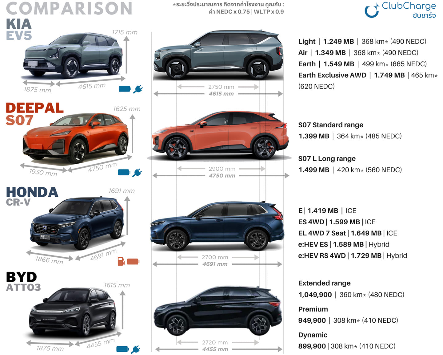 지금 태국시장에서 EV5 경쟁모델로 중국 창안자동차의 Deepal S07, 혼다 CR-V, BYD 아토3 으로 평가받고 있는데 태국에서 가장 인기 있는 세그먼트인데 BYD의 아토 3은 가격 경쟁력은 있지만 수치상으로 사이즈는 비슷하지만 실내가 상당히 좁아 창안과 혼다 두 개만 남는데 혼다는 전기차가 아니라 제외하도록 하겠다. 태국에서도 하이브리드를 통계를 낼 때는 같이 포함시키지만 소비자들은 아예 분리해서 전기차냐 내연이냐(하브포함)으로 결정하기 때문에 제외했다.