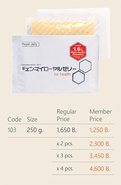 매장들은 대부분 태국에 머물고 있는 일본인 주거지역 근처에 있다. 필자는 수쿰빗 지역에 한번 가서 많이 사다놓고 냉동고에 두고 먹고, 선물 드리고 한다. 항상 냉장 보관을 해야 하다보니 선물을 가지고 가서 드릴때까지 세삼한 배려가 필요하지만 그만큼 효과는 좋은 것 같다. 로얄 젤리 효능은 따로 찾아 보시면 많이 나오고 아래에 사이트 링크 걸어두겠다. 사이트는 일본어와 태국어 밖에 없지만 그림 보면 알 수 있다. 그리고 태국의 인터넷 쇼핑몰 Shopee.co.th 에 접속해서 Chiang mai Royal jelly 검색하면 나온다.