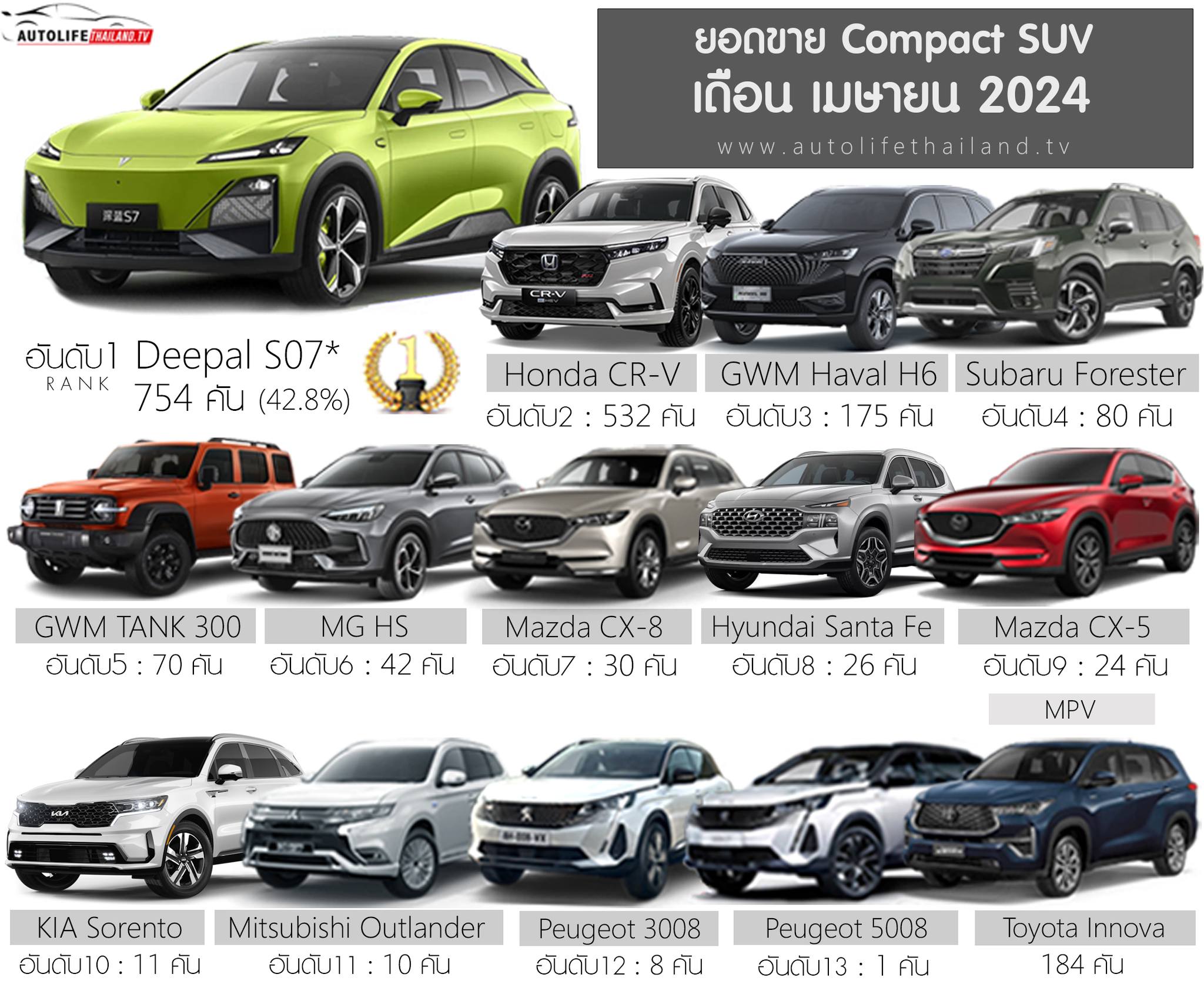 조금 전 발표된 콤팩트 SUV 판매순위다. 이번에는 전기차와 내연기관 모두 포함해서 순위를 집계했는데 1위는 중국 창안 자동차의 디팔 S07 이 차지했다. 정말 태국에서 PPV (무조건 도요타 혹은 이스즈)를 제외하고 대중적으로 사용하고 인기의 척도라고 할 수 있는 세그먼트에서 혼다 CR-V는 불패의 신화를 보여줬지만 중국이 1위를 차지했다. 2위는 혼다 3위가 바로 GWM의 하이브리드 SUV 하발 H6 가 차지했다. 페이스리프트를 거치긴 했지만 아직 처음 진출한 세대가 그대로 유지 중인데 풀체인지를 한 CR-V의 뒤를 계속 쫓고 있다는 점이 의미가 크다.