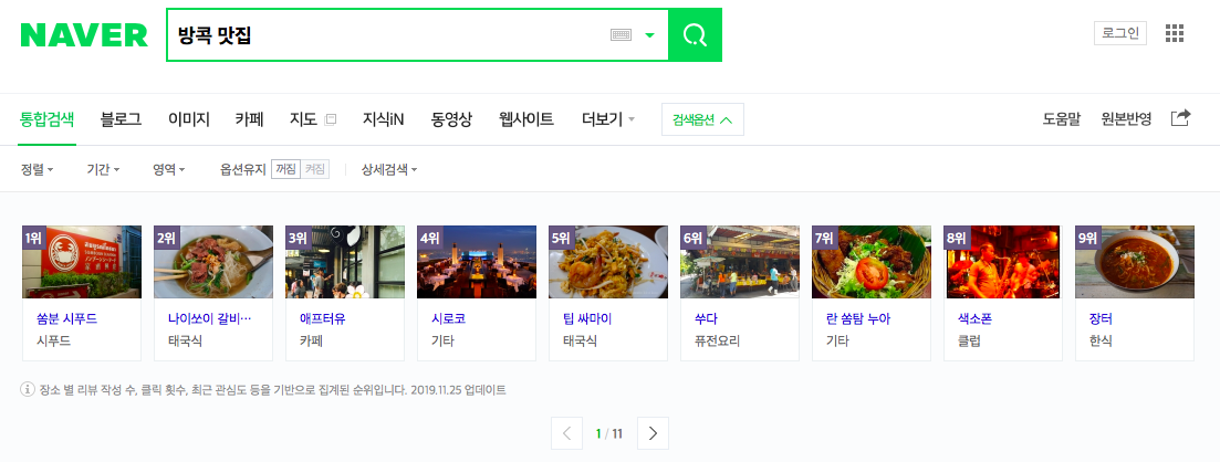 방금 네이버에 방콕 맛집을 검색해보았다. 1위부터 쭉쭉 데이터를 기준으로 알려준다. 1위에 오른 씨푸드 전문점인 쏨분 씨푸드는 체인점으로 불호가 거의 없는 식당이다. 라차다 꽝 씨푸드, 수쿰빗 쏜통 포차나 처럼 다른 선택지도 있지만 개인적으로 불호가 거의 없어 자주 찾게 되는 곳이다. 예전에는 일본인 위주였다면 요즘은 중국인도 많이 찾는다. 에프터유는 가족 사업으로 방콕 통로에서 시작한 일본 스타일 디저트 가게가 빙수 붐과 함께 불티나게 인기를 끌던 곳이다. 한국에서 온 외식업체 대표들도 꽤 칭찬하는 브랜드로 특유의 포장 기술로 부가 가치를 주고 맛도 나름 벨런스가 있다. 시로코는 라운지지만 거의 방콕의 야경을 보기 위해 많이 찾고 임팩트는 이곳을 아직 이길 곳은 없지만 조금 대화도 하고 여유를 찾고 싶다면 소피텔 소, 메리엇 통로 등 다양한 선택지가 있다.