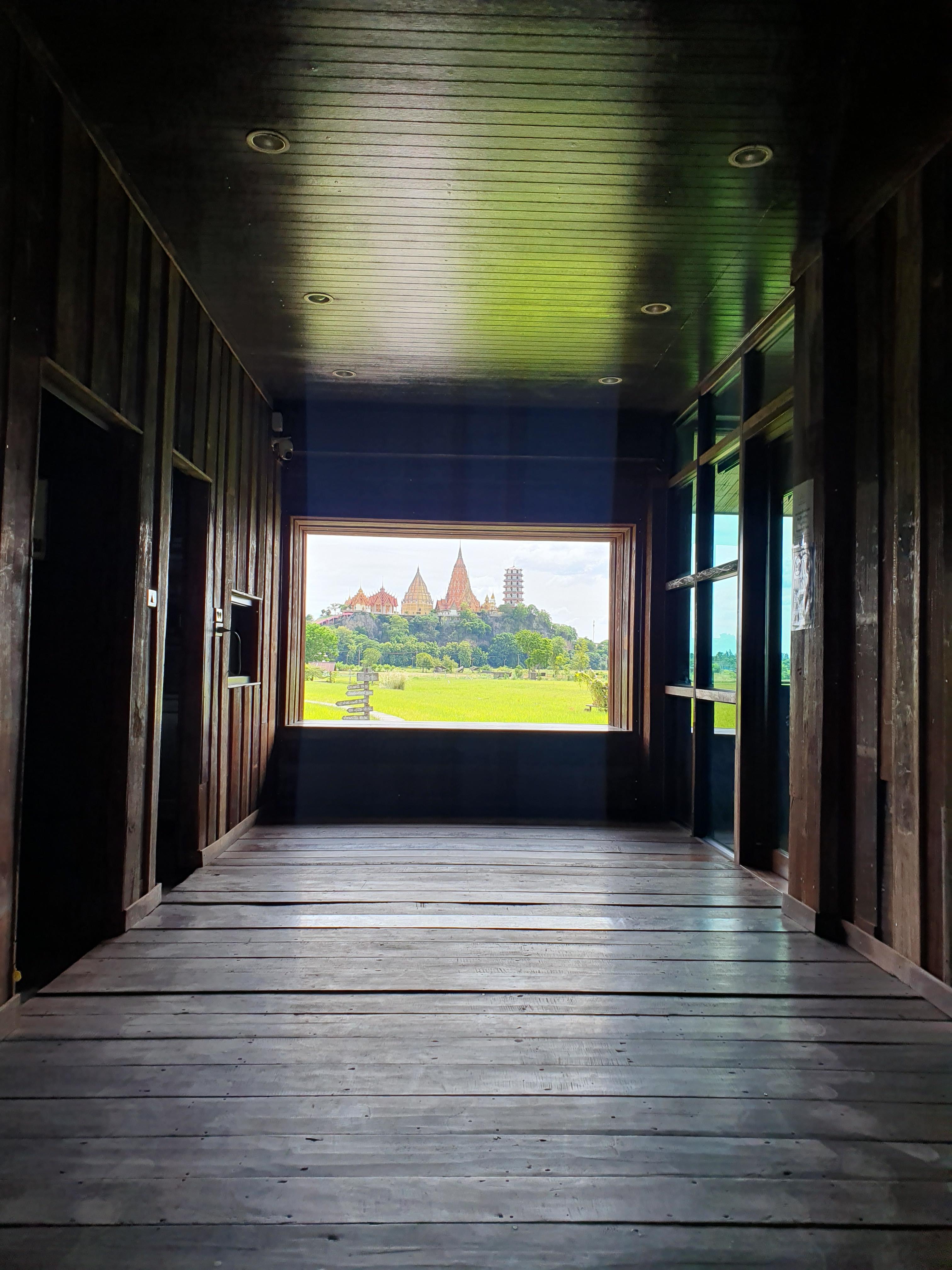 유명했지만 폐쇄된 호랑이 사원이 보이는 사진 맛집 미나 카페다. 평일이라 사람이 없어서 더욱 좋았다. 처음 열었을 때는 정말 인산인해였는데 평일이고 우기라 조용해서 마음껏 사진 찍고 더 좋았다. 방콕에서 차를 타고 3시간 정도 다이렉트로 아점을 하기 위해서 찾은 곳이다. 아침에 일어나서 바로 출발했기에 조금 출출한 상태였다. 방콕과 깐짜나부리를 1시간 더 줄여준다는 고속도로는 가오픈 상태라 금요일, 토요일, 일요일만 운영을 한다고 한다. 그래서 딱 3시간이 소요됐고 미나카페에 도착하자 마자 엽서처럼 펼쳐진 풍경에 가장 먼저 나온 말은 "카카오톡 프로필 업데이트 해야겠다." 였을 정도로 인생샷 건질 수 있는 느낌이 막 오는 곳이다.