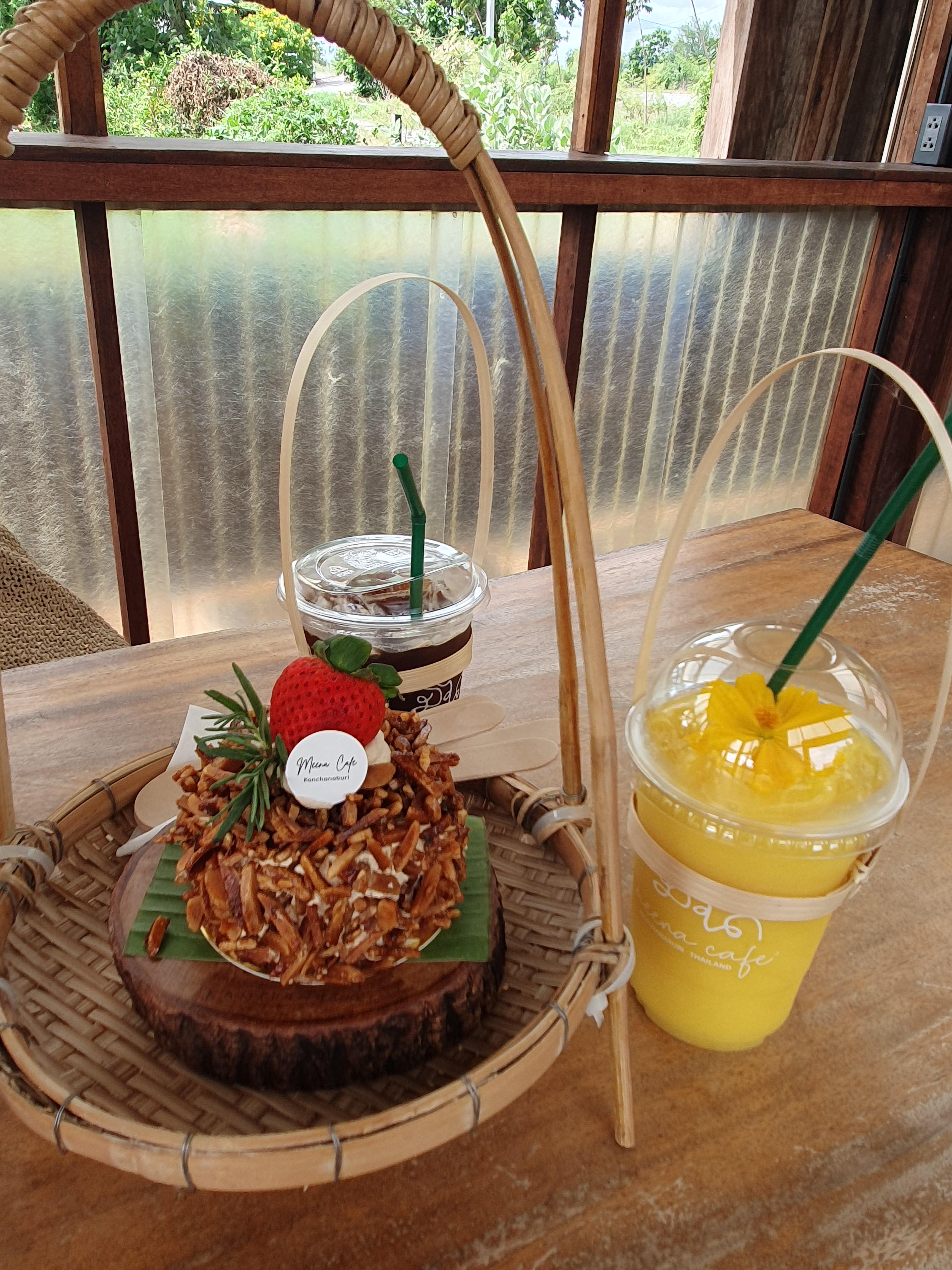 여럿이 같이 먹을 수 있는 메뉴 말고 한사람당 하나씩 먹을 수 있는 태국 요리를 주문하고 해치우고 디저트로 케이크와 음료를 주문했다. 기상과 동시에 방콕에서 3시간을 차를 타고 와서 출출했기에 식사하기에 충분했고 가격도 저렴한 편이다. 그리고 여유롭게 사진도 찍고 케이크 먹고 음료 마시면서 한숨 돌릴 수 있는 시간이었다.