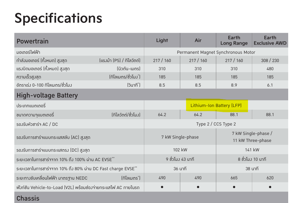 세 번째는 빠른 배터리 소모다. EV5는 중국 내수 판매용으로 만들어진 모델로 한국에는 판매하지 않는다. 당연히 중국에서는 가격 경쟁력을 확보하기 위해서 NCM 배터리가 아닌 LFP 배터리를 선택했는데 그게 타 중국 브랜드들에 비해 소모가 훨씬 심하다고 한다. 개인적으로 중국 전기차 브랜드와 기아 EV5를 시승해보지 않아서 단언할 수 없지만 태국 유저들 사이에서 배터리가 생각보다 더 빨리 소모된다는 이야기가 상당히 많다.